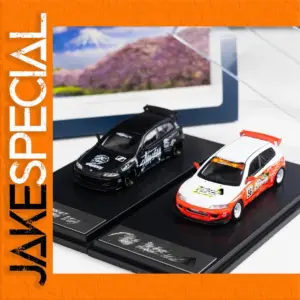 Imagine adding the stunning FUJI 1:64 Civic EG6 JACCS diecast model to your collection. This exquisite piece captures the essence of the iconic Civic EG6 with meticulous attention to detail. The left model showcases a sleek black finish with bold yellow-accented wheels, while the right model dazzles in white adorned with vibrant orange and red accents. Crafted from high-quality metal, this model requires no batteries, making it an effortless addition to your display. Whether you're a seasoned collector or just beginning, the craftsmanship and sporty designs will enhance any setting and capture the admiration of all.
