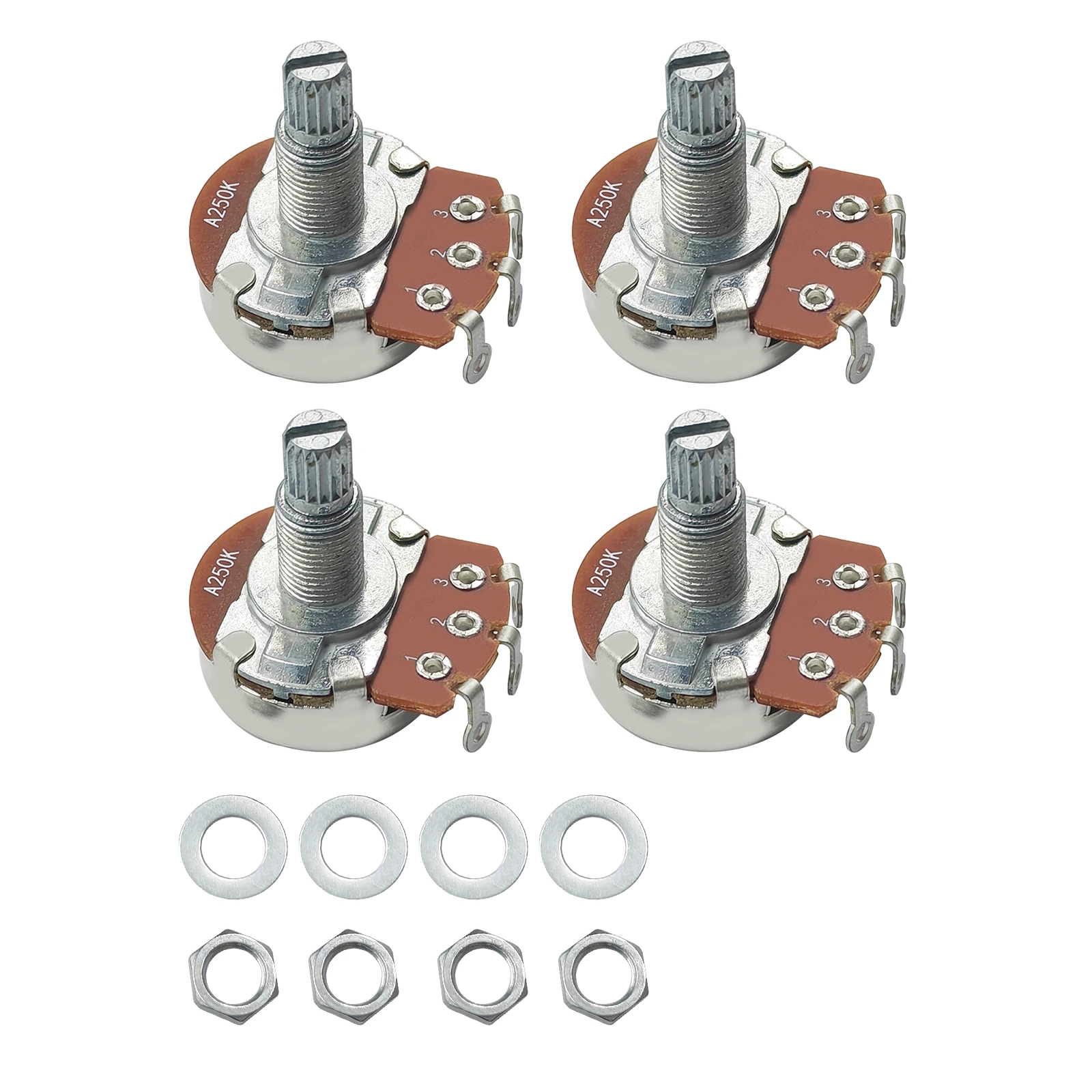 - Includes four high-quality potentiometers with a 24mm base diameter, designed for reliable guitar or bass control adjustments in any build or repair project.