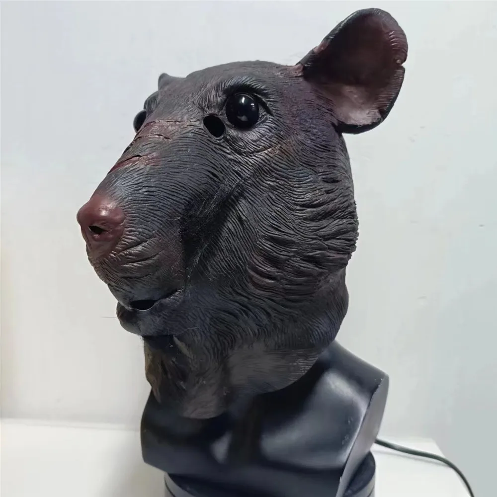 Experience the playful charm of the Funny Cartoon Rat Animal Mouse Latex Mask, perfect for anyone looking to add a touch of humor to their festivities. Crafted from high-quality latex, this mask boasts a flexible and glossy finish that enhances its cartoonish appeal. With exaggerated black eyes, a rounded snout featuring a pink nose, and prominent front teeth, it embodies a friendly and amusing character. The mask's dark brown coloring and textured surface give it a realistic fur-like quality, making it an eye-catching addition to any costume. Designed for comfort, it fits most adults, making it versatile for Halloween, Christmas, and countless parties.