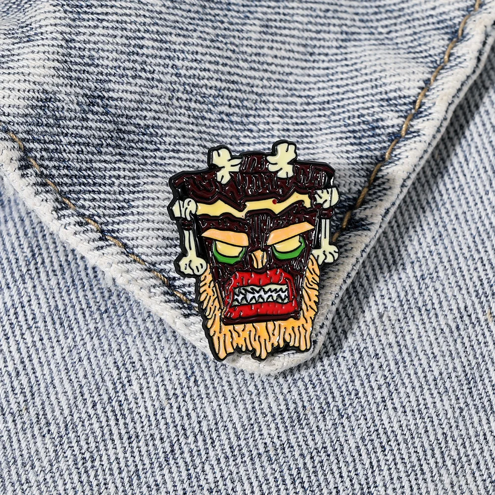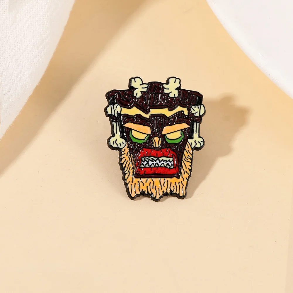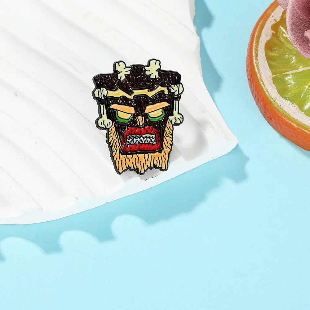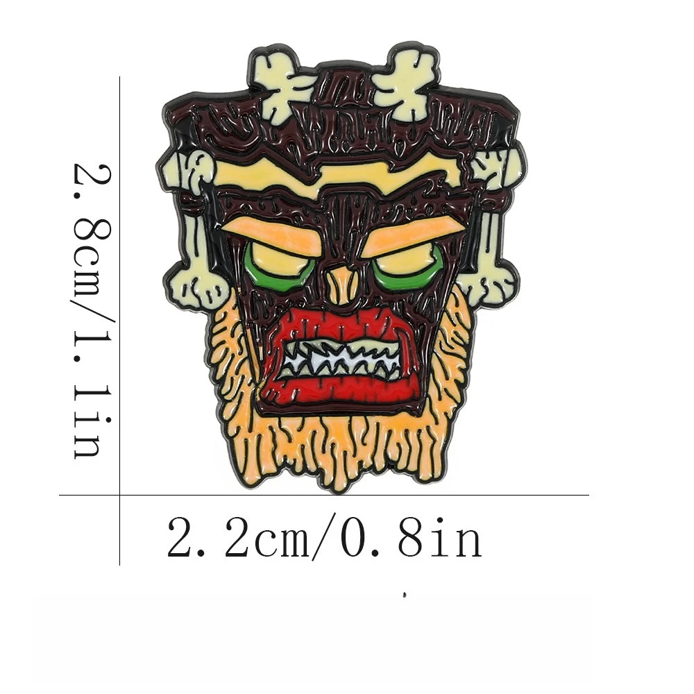 Elevate your accessory game with this Funny Retro Totem Mask Brooch, crafted from durable alloy material. Its bold, stylized design showcases a textured brown mask inspired by tribal aesthetics, featuring striking green eyes, a fierce red mouth with jagged white teeth, and contrasting white bone shapes. The smooth black outline emphasizes its vibrant details, making it a unique addition to your collection. This unisex brooch is versatile for jackets, backpacks, hats, and DIY clothing projects, reflecting influences from Retro, Viking, Punk, and Gothic styles. Size may vary slightly by 1-3mm due to measurement differences.