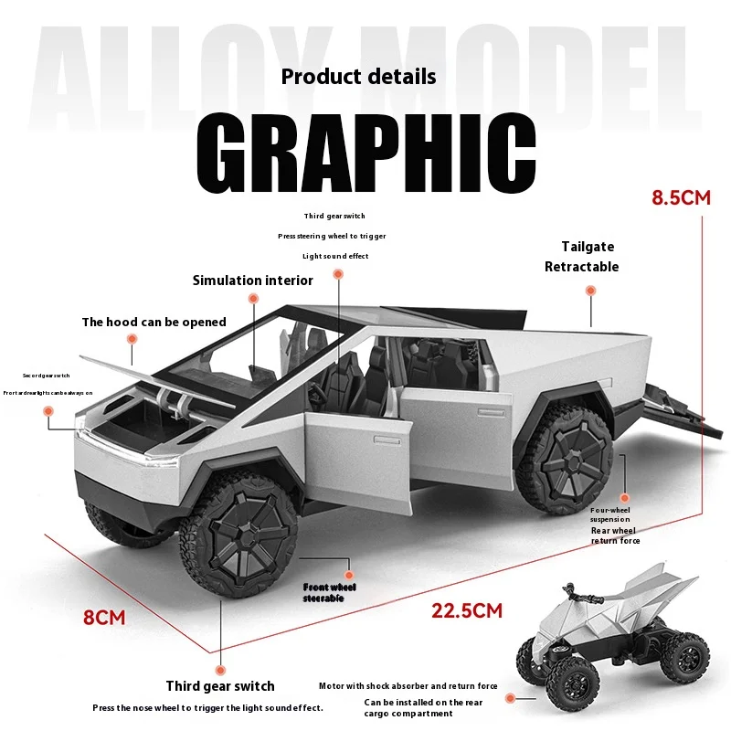 Experience the modern, futuristic appeal of this 1:24 scale diecast SUV model, crafted from durable metal and available in striking green, grey, or silver finishes. Its angular design with flat panels, sharp lines, and rugged black tires with deep treads creates a bold, off-road look. The model includes a button battery for illumination or electronic features, enhancing its visual impact. Ideal for collectors and enthusiasts aged 14 and above, this trendy decorative ornament makes a perfect holiday gift or display piece. Its sleek, geometric aesthetic and detailed construction ensure it stands out as a stylish addition to any collection or modern decor.