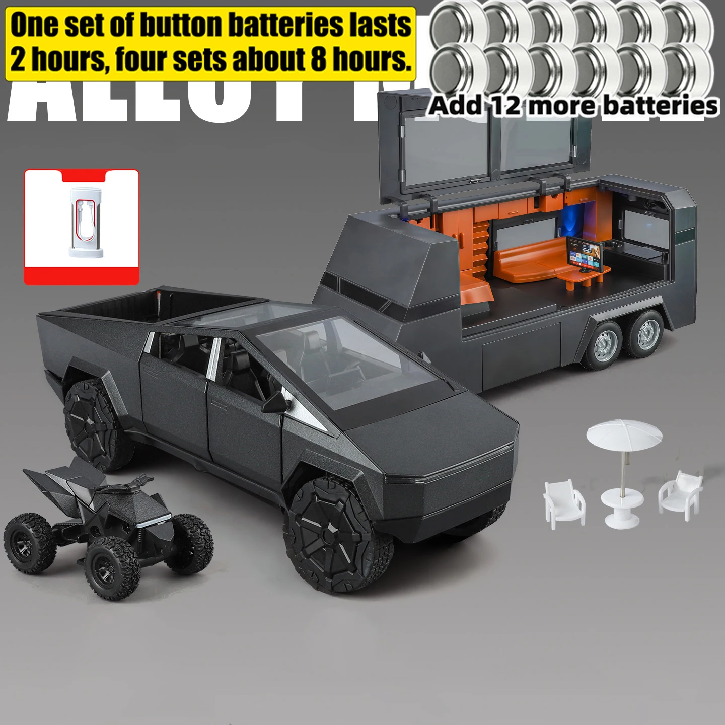 Enhance your collection with this stunning futuristic off-road pickup truck model. Its realistic design, combined with light and sound features, makes it perfect for display or as a unique gift for enthusiasts. Imagine the admiration as you showcase this detailed piece, reflecting modern aesthetics and rugged off-road spirit. Its durable build ensures it remains a treasured item for years. Whether you're a dedicated collector or a car enthusiast, this model adds a touch of sophistication and excitement. Secure yours today and bring a futuristic adventure right into your collection!