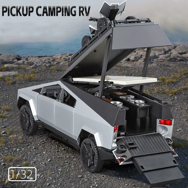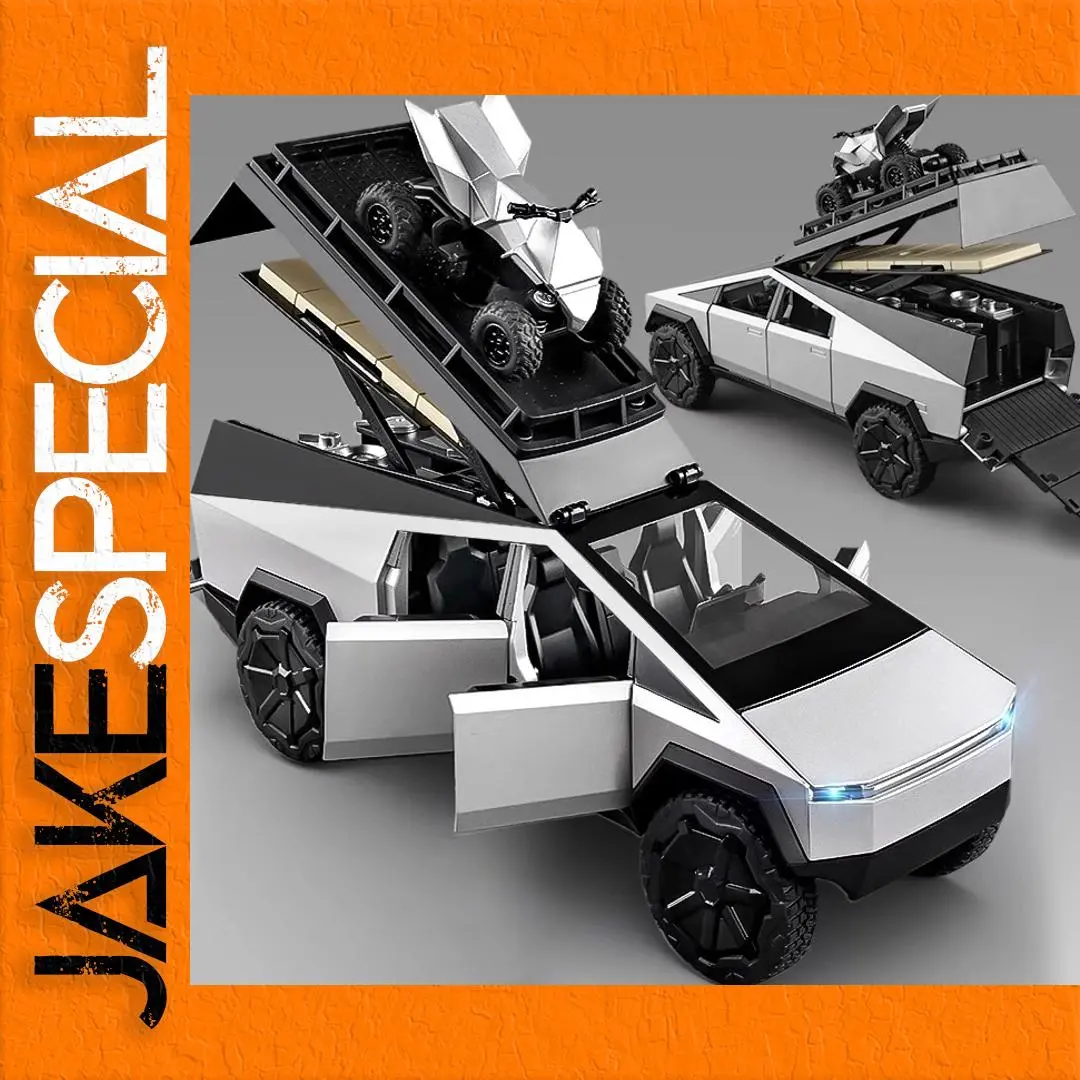 Experience the sleek sophistication of this 1:32 scale diecast alloy toy truck, available in black, green, and silver, featuring striking metallic finishes and angular, futuristic design elements. This collectible model boasts realistic sound and light functions, adding an engaging high-tech touch. Crafted from durable alloy and plastic materials, it requires no batteries or electrical power, making it perfect for display or imaginative play. Suitable for ages 4 and up, including children and adults, this high-quality, non-toxic, certified toy combines modern aesthetics with sturdy construction, allowing you to relive futuristic vehicle designs in a meticulous, detailed form that’s sure to impress collectors and enthusiasts alike.