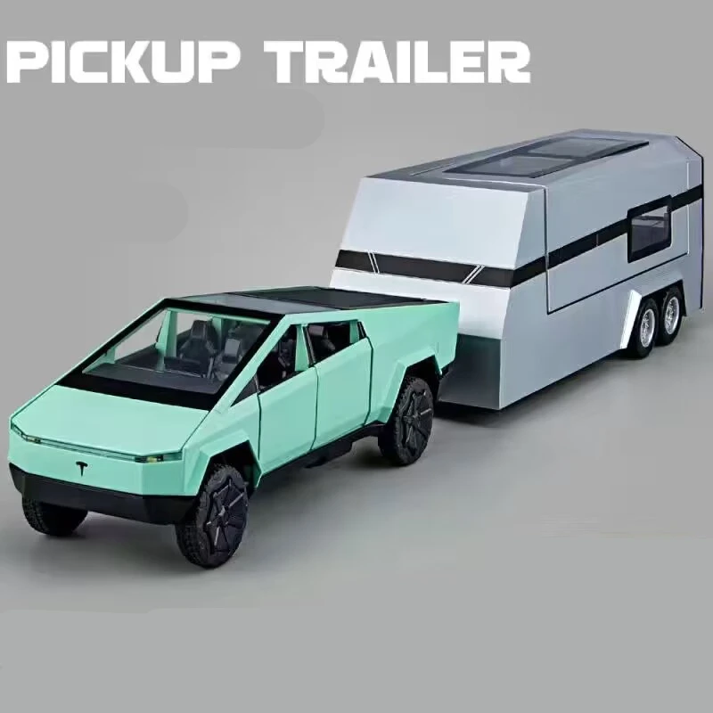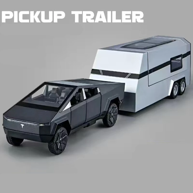 Experience a stunning glimpse into the future with this meticulously crafted 1:32 scale pickup model, featuring a sleek, modern design that captivates at first glance. The model’s angular lines and streamlined shape evoke innovation and sophistication, making it a perfect addition to any collection or display. Crafted from durable alloy, it offers both robustness and authenticity, ensuring long-lasting enjoyment. The metallic silver finish highlights its futuristic aesthetic, while the matching trailer with a distinctive black stripe provides a cohesive look. Whether displayed prominently or used for imaginative play, this model invites you to visualize yourself as the proud owner of a truly modern vehicle. It’s more than just a model — it’s a statement of style and technology.