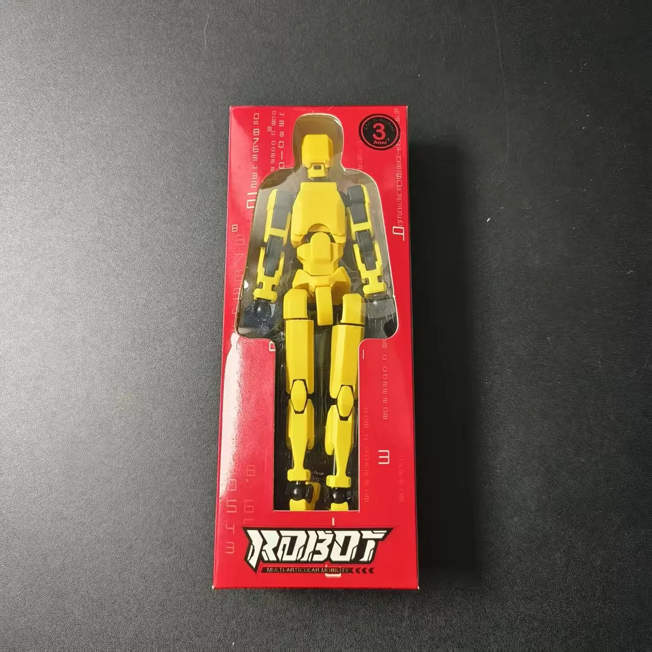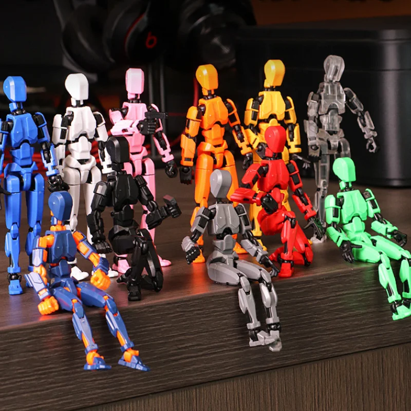 - Technical specifications include 3D-printed multi-jointed resin bodies, available in colors: black, blue, orange, red, transparent, white, yellow, providing versatile display options.