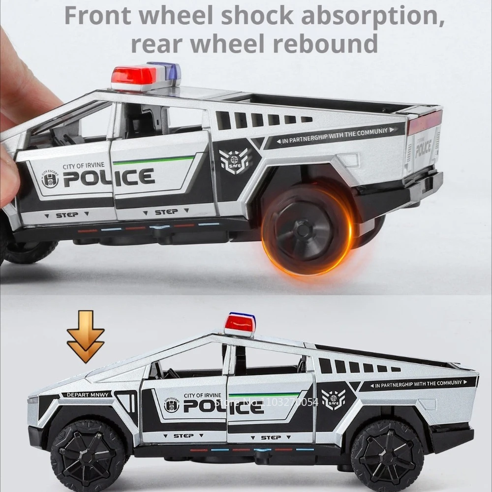 Imagine yourself owning this remarkable, futuristic police pickup truck that commands attention and admiration. Whether displayed prominently or used as a detailed collectible, it’s designed to impress. The combination of vivid lights, realistic sounds, and durable construction ensures it provides both aesthetic pleasure and immersive interaction. Perfect for mature collectors, this model makes an exceptional gift or a captivating conversation piece. Don't miss the opportunity to add this high-tech masterpiece to your collection—take the next step and make it yours today!