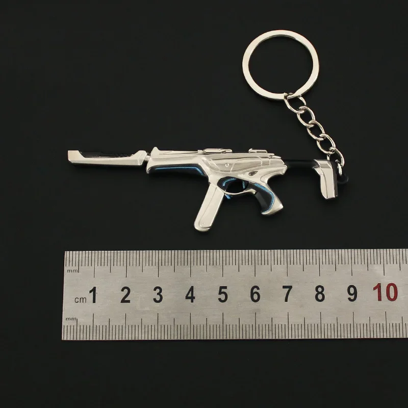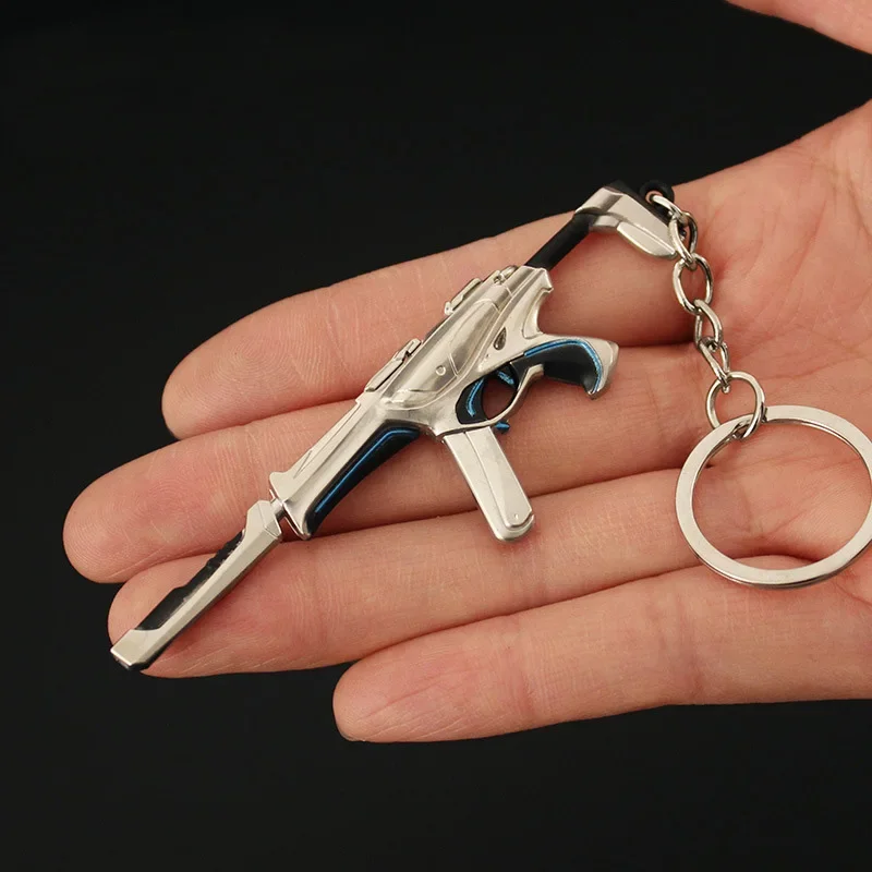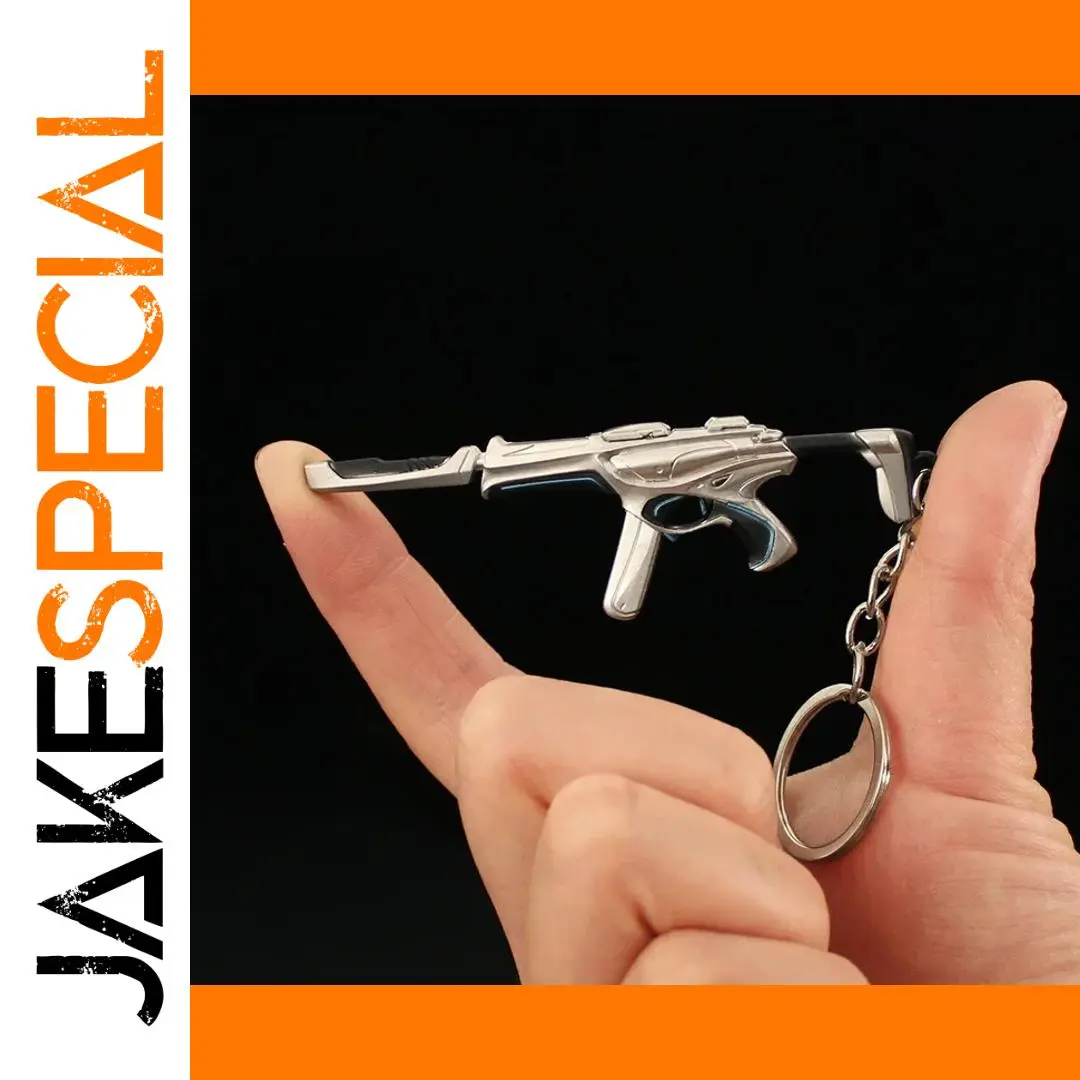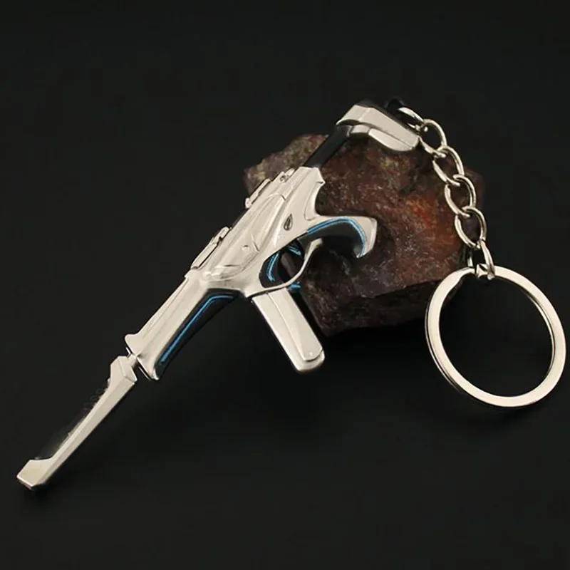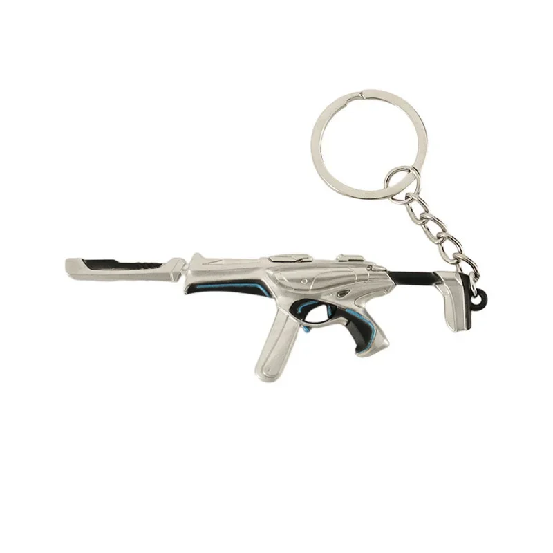 Imagine elevating your everyday style with this striking Valorant-themed keychain. Crafted from durable zinc alloy, it measures about 9 centimeters, blending sleek silver and black finishes for a modern look. Its detailed moldings mirror a high-tech sci-fi handgun, with sharp contours, textured grips, and angular lines that evoke a futuristic, gaming-inspired aesthetic. The bold geometric shapes and polished metallic surface make it an eye-catching accessory. Whether attached to your keys, bag, or used as a decorative piece, this trendy gadget promises to showcase your passion for gaming and sci-fi culture. Its versatile design and robust construction make it a perfect gift or personal addition for enthusiasts who appreciate contemporary style with a digital edge.