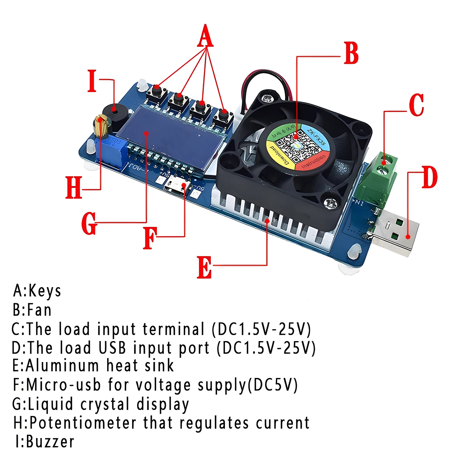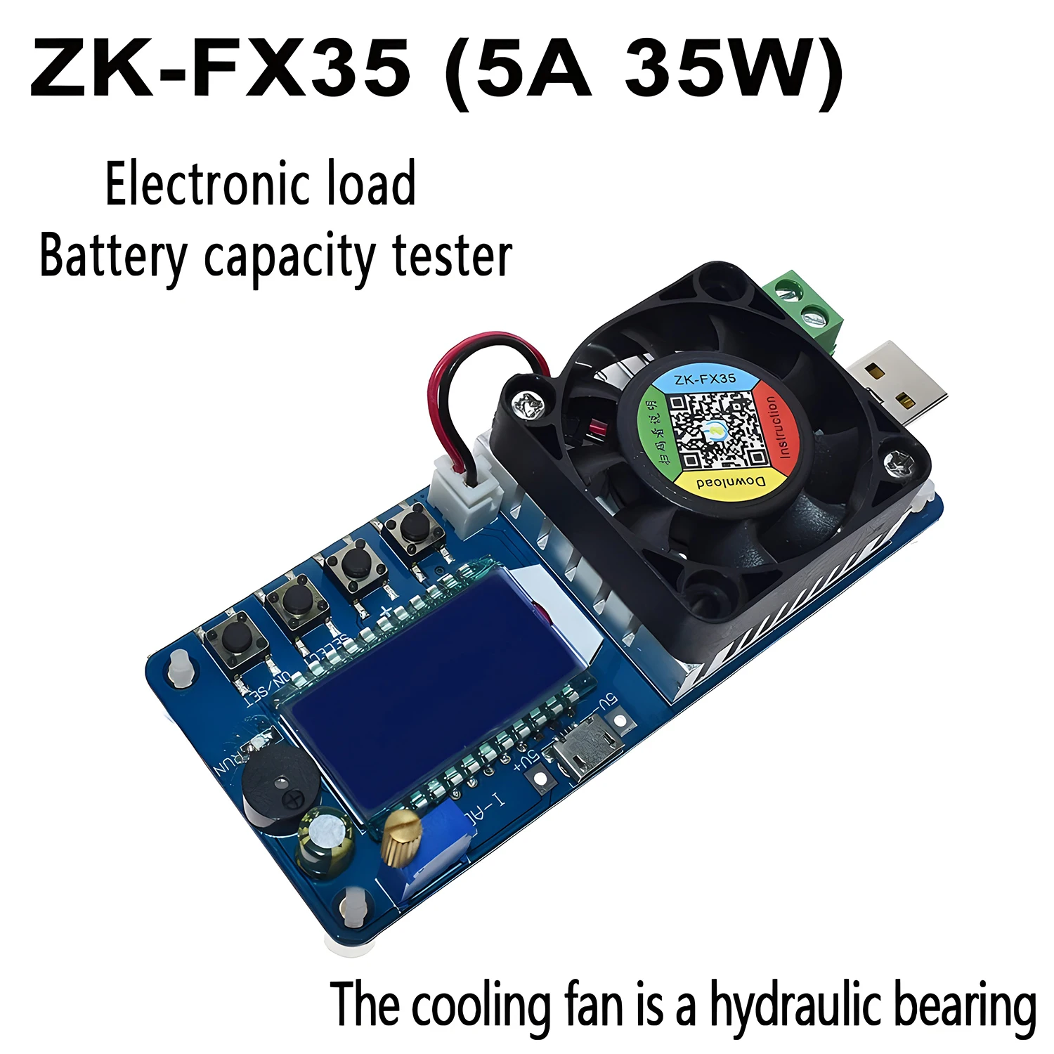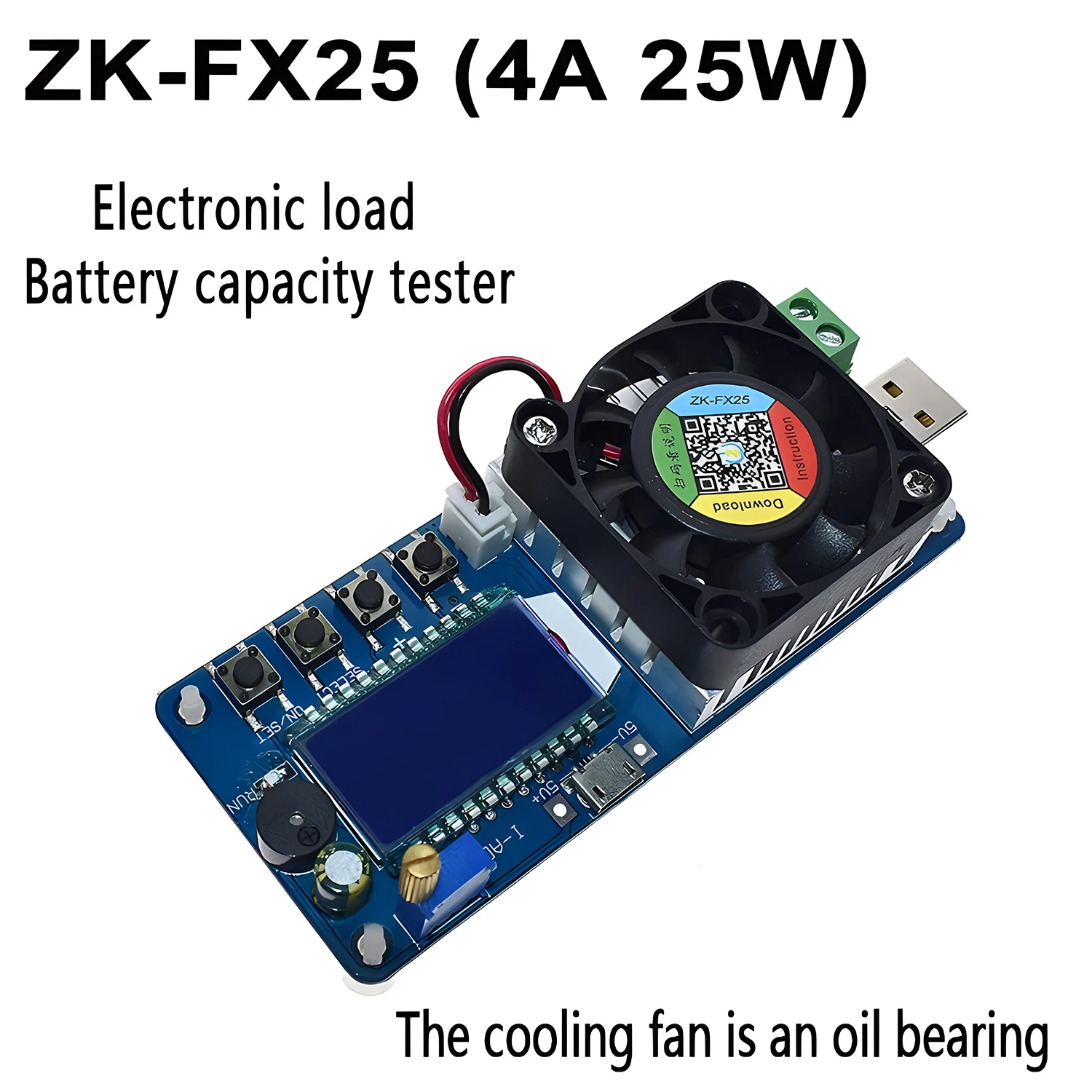 Introducing the FX25/FX35 Battery Capacity Tester, a sleek, compact electronic load device designed for precise battery and power supply testing. Featuring models supporting load currents of 4A (FX25) and 5A (FX35), with power ratings of 25W and 35W, and a DC work voltage of 5V, it accurately measures voltage from 1.5V to 25V with 1% precision, current from 0-4A or 0-5A with 1% accuracy, and temperature from -15°C to 110°C with ±2°C accuracy. Its HD LCD display prominently showcases real-time parameters. Equipped with multiple protections—including over-voltage, over-current, over-power, under-voltage, over-temperature, and reverse connection (FX35 only)—it features an aluminum heat sink and a high-speed fan at approximately 6000 RPM, ensuring efficient cooling. The device supports adjustable discharge parameters, automatic measurement, and intelligent temperature control, making it ideal for battery testing, charger aging, and circuit evaluation in a durable, portable package.