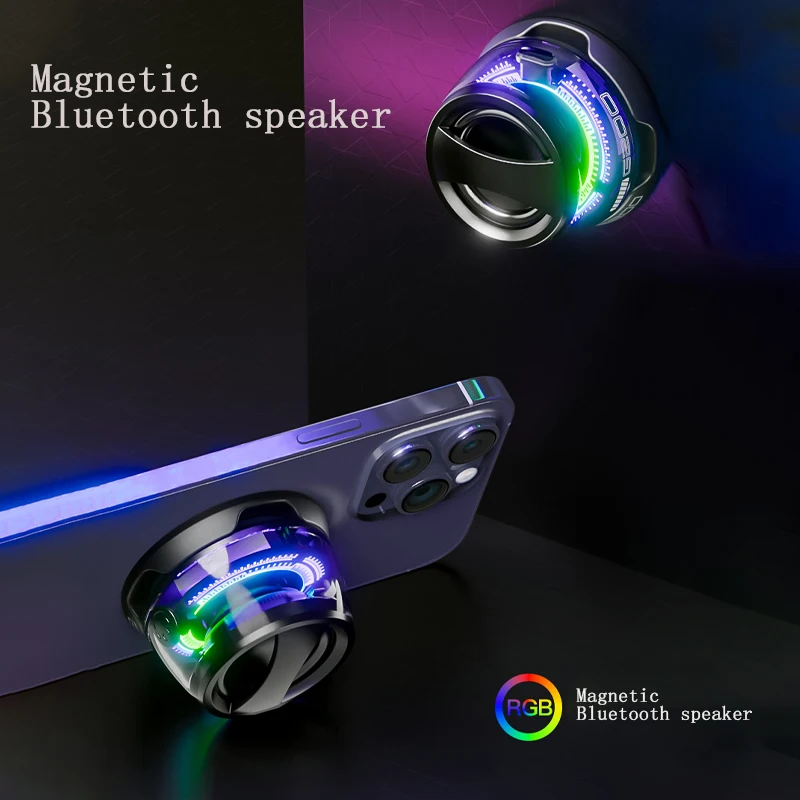Experience vibrant sound and eye-catching illumination with this modern pair of magnetic Bluetooth speakers. Crafted from glossy black ABS, they combine sleek minimalism with playful LED rainbow effects in purple, green, and blue. These pocket-sized devices are designed for portability, featuring a curved, handle-like top for easy handling and hanging. Easily connect via Bluetooth to enjoy wireless music, while their magnetic suction function allows attaching to metal surfaces for hands-free convenience. They're perfect for outdoor adventures, functioning as both ambient lights and practical phone stands. Rechargeable via a 5V lithium-ion battery, these speakers offer luminous flux from 249 to 2000 lumens, making them versatile décor and entertainment tools. Suitable for gifting or personal use, they elevate any environment effortlessly.