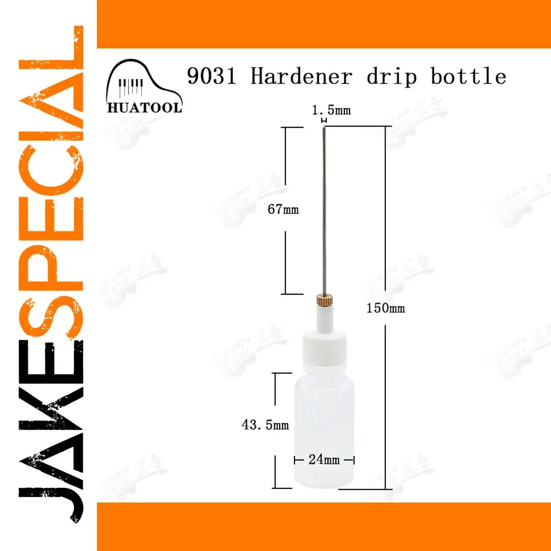 Experience precision and durability with the G9031 professional-grade hardener drip bottle, designed for piano tuning, repair, and maintenance. Crafted from high-quality brass and cupronickel, this sleek, minimalist bottle features a transparent body for easy content visibility, a white screw-on cap, and a narrow, 67mm long metal dispenser tube with a 1.5mm diameter for precise application. The metallic knurled ring beneath the connection enhances control during use. Measuring approximately 24mm in diameter and 43.5mm in height, this robust tool is essential for professional instrument repairs, ensuring accurate dispensing and long-lasting performance. Originated from Qingdao, it embodies craftsmanship and reliability.
