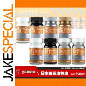 Explore the exquisite GAIA Oiliness Model product line, featuring an array of eight gorgeous bottles in vibrant designs. Each 50ml bottle showcases a unique glossy finish, whether it’s the luminous EX-01 (Ex-White), sleek EX-02 (Ex-Black), or the eye-catching metallic tones of EX-07 (Ex-Silver) and EX-08 (Ex-Gold). A well-thought-out design combines aesthetics and functionality, providing a striking visual appeal ideal for collectors and enthusiasts alike. While the bottles may arrive not fully filled, this is standard practice. Imagine proudly displaying these stunning bottles in your collection as they complement your style and showcase their modern elegance.