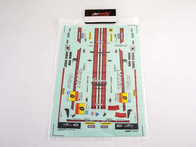 Enhance your 1/10 scale RC car with this vibrant racing decal sheet designed specifically for the GAINER TANAX GT-R NISMO (R35). Measuring 37 x 44 millimeters with a sleek 0 millimeter thickness, this high-quality paper decal sheet features bold red racing stripes, intricate sponsor logos, and sharp, colorful graphics that add a sporty, aggressive look to your vehicle. Suitable for ages 14 and above, it includes application tools for easy customization. Perfect as an upgrade for your car shell, this decal set brings professional detail and dynamic style, helping you create a unique, eye-catching finish for your high-performance RC car.