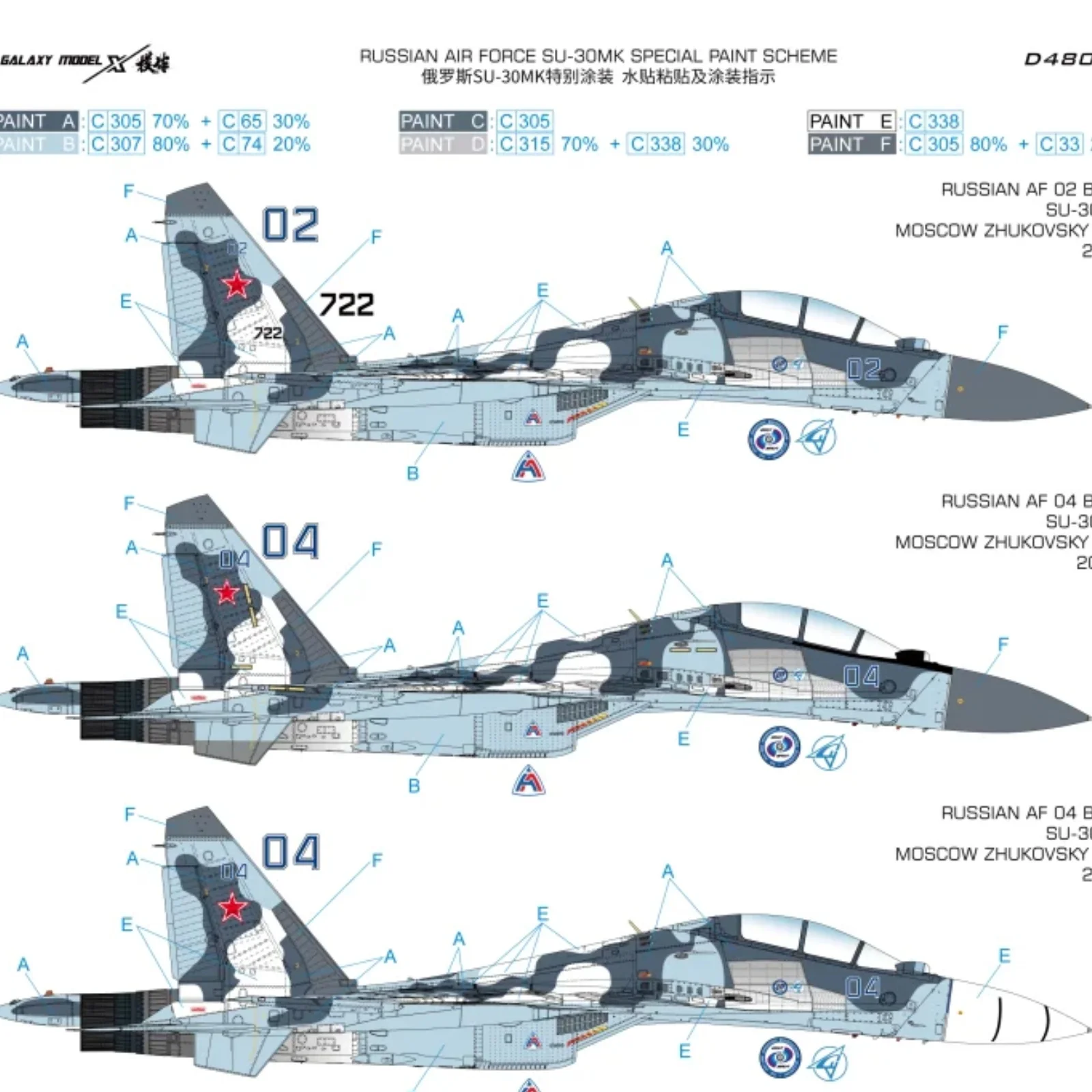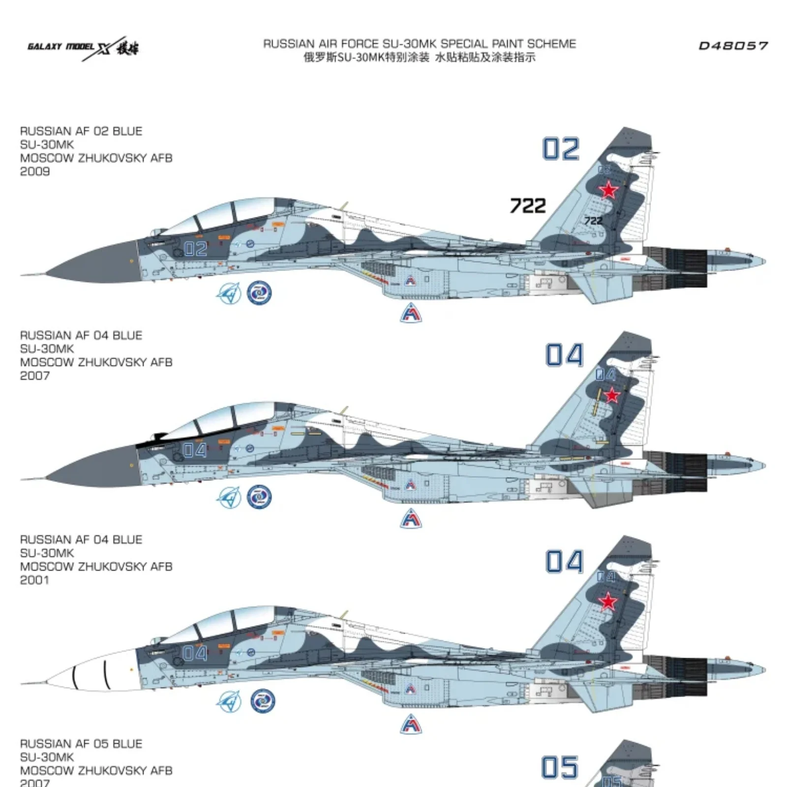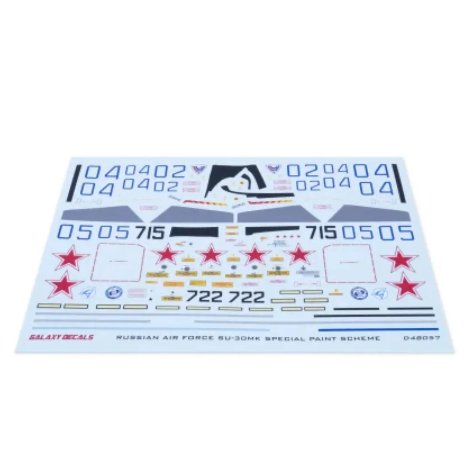 Enhance your 1/48 scale Russian Air Force SU-30MK model with this die-cut flexible mask decal set, model D48057. Featuring a striking blue camouflage pattern with designations 02/04/05, it includes decals and masks that ensure accurate replication of the aircraft’s distinctive markings. Crafted to improve realism and precision in scale modeling, this set is ideal for aviation enthusiasts seeking a professional finish. The decals are designed for easy application, allowing you to create a highly detailed and authentic replica of the Sukhoi Su-30MK fighter jet. Made in mainland with non-hazardous materials, it’s perfect for hobbyists aiming for perfection.