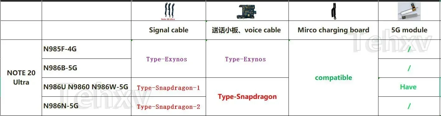 - Compatible with models N985F, N986B, and N986U, with version distinctions affecting Wi-Fi and microphone board operation, ensuring perfect fit and efficient performance.