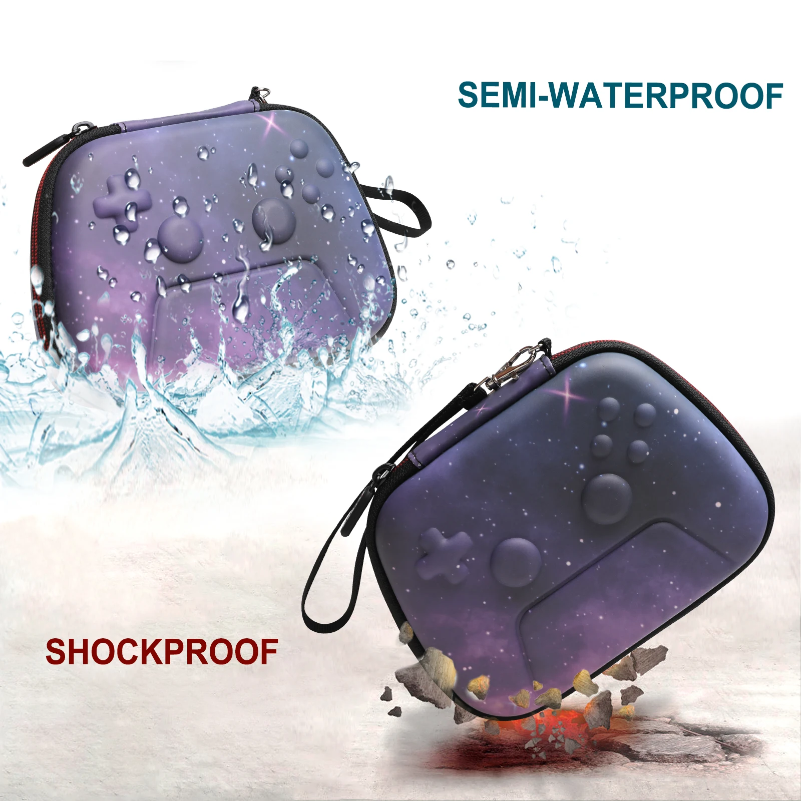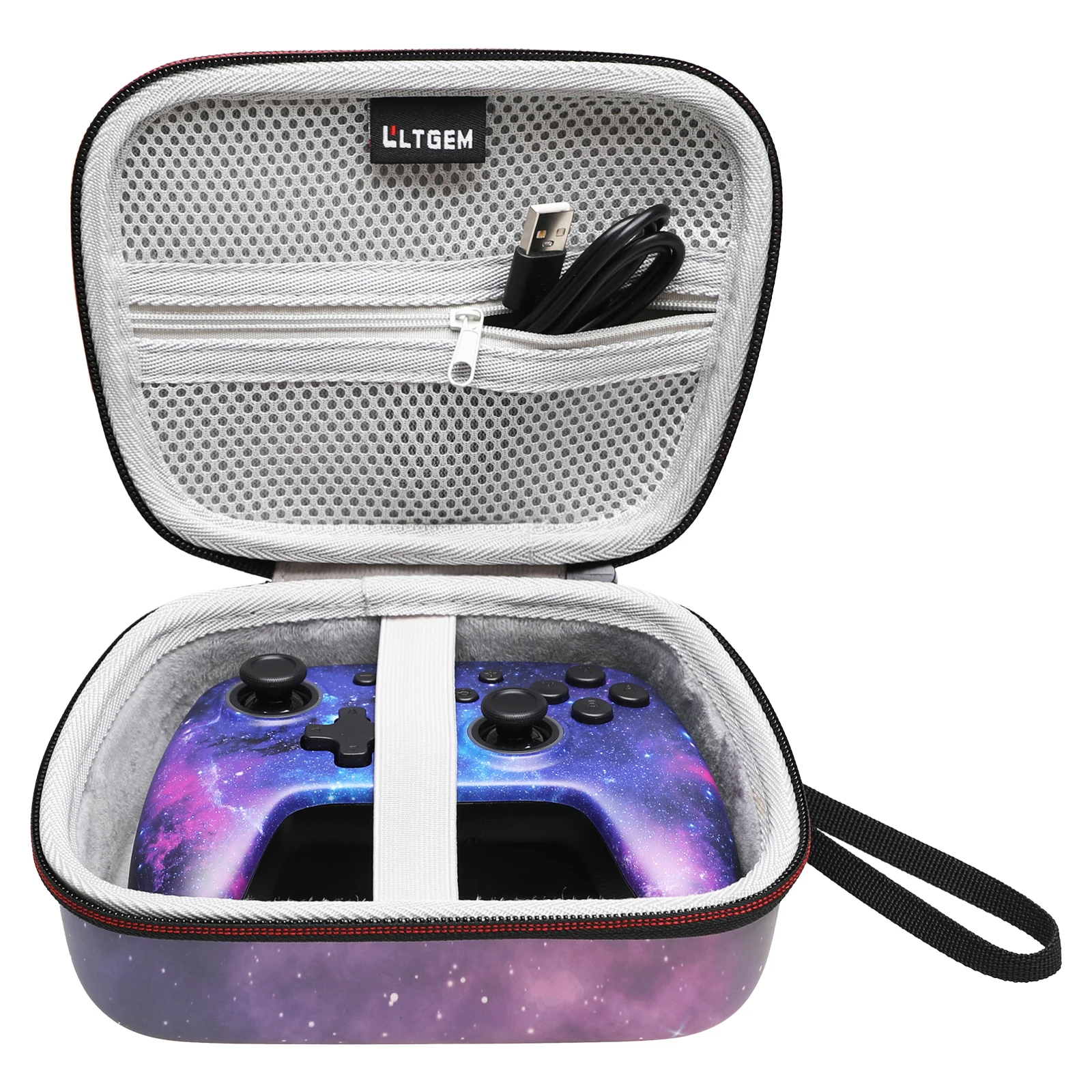 Protect your NexiGo Bluetooth controllers for Switch, Switch Lite, and OLED with this vibrant galaxy-themed carrying case made from durable EVA and Oxford cloth. Featuring a dazzling design in shades of purple, pink, and blue with star patterns, the case offers a snug fit with precise internal dimensions, a soft lining to prevent scratches, and a secure Velcro strap to keep controllers stable during transport. It also includes a mesh zipper pocket for small accessories like cables and batteries and a sturdy zipper closure for security. Its lightweight, compact design makes it ideal for gamers who want stylish, reliable protection on the go.