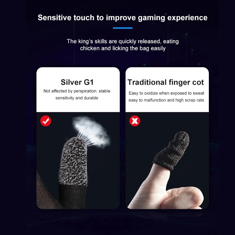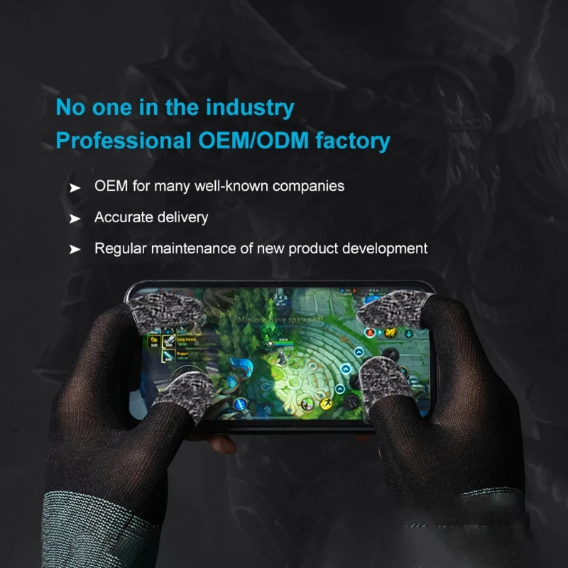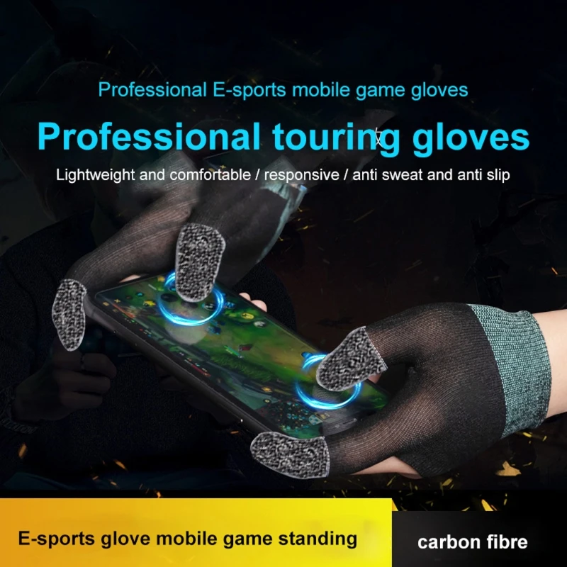 Enhance your mobile gaming experience with these sleek black and gray finger thumb glove sets, crafted from finely knitted nylon with high-sensitivity silver fiber at the fingertips for precise touchscreen responsiveness. Weighing only 25 grams, each glove features dot silica gel on the palms for a secure non-slip grip and is designed for breathability and sweat absorption with a blend of carbon fiber, heating wire, and spandex. Compatible with nearly all mobile games, these lightweight, high-performance gaming gloves ensure smooth, accurate controls, making them an essential accessory for serious gamers seeking comfort and precision during intense gameplay.