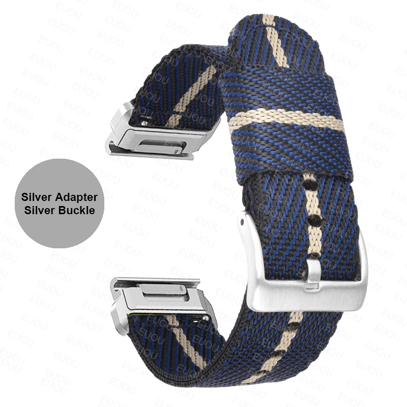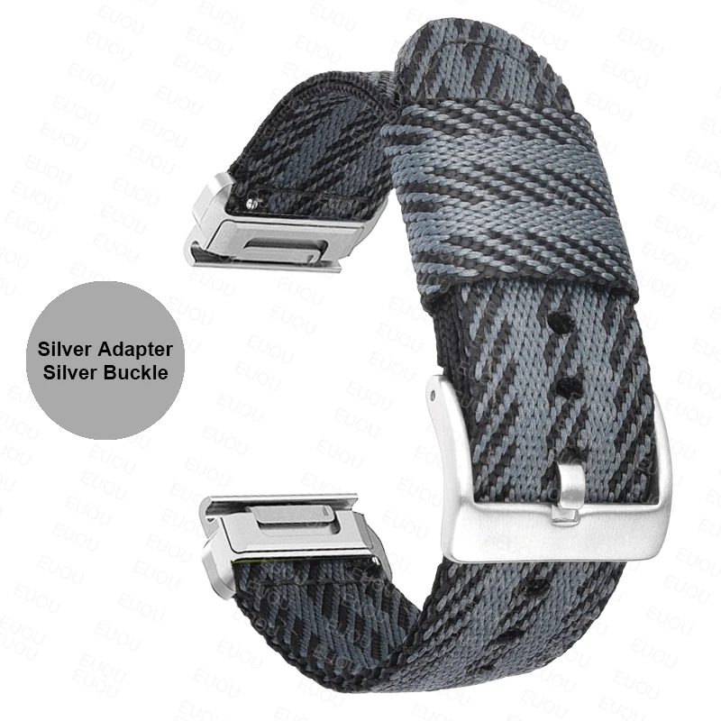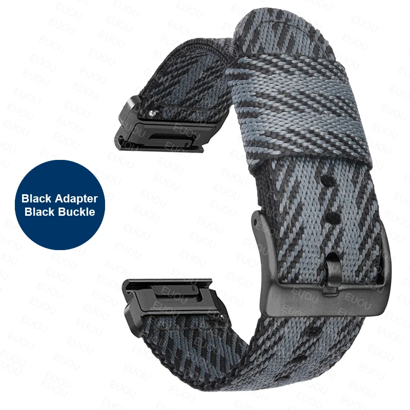 Elevate the style and comfort of your Garmin device with this QuickFit 26mm and 22mm Braided Nylon Band. Designed to fit various models such as the Fenix 7X, 6X, and 5X, as well as the Tactix and Epix Gen 2, this strap offers a perfect blend of durability and flexibility. Feel the snug yet comfortable fit as you seamlessly transition from outdoor adventures to daily life. The refined black or silver steel buckle ensures a secure closure while adding a touch of elegance. Picture yourself sporting this versatile band, enhancing both your watch's functionality and your personal style.