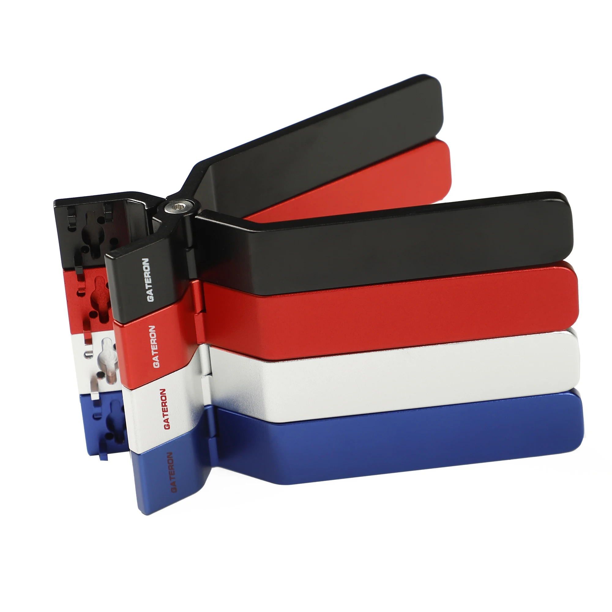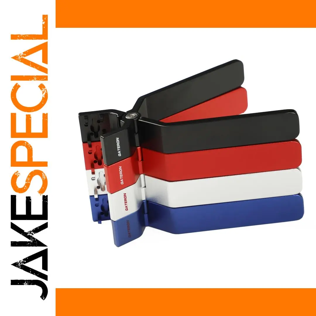 Experience ease and precision with this Gateron Switch Opener, designed specifically for keyboard enthusiasts who want to service or customize their switches effortlessly. Crafted from high-quality CNC-machined metal, it showcases a sleek, rectangular shape with a slightly curved top for optimal grip. Its anodized matte finish in vibrant colors—black, red, white, or blue—adds a stylish touch while maintaining durability. The carefully engineered cutouts and slots fit perfectly with Cherry MX, Gateron MX, Outemu MX, and JWK MX switches, ensuring safe, damage-free opening of switch housings. Its refined construction guarantees longevity, making it an essential tool for avid hobbyists and professional keyboard builders aiming for reliable, professional results every time.