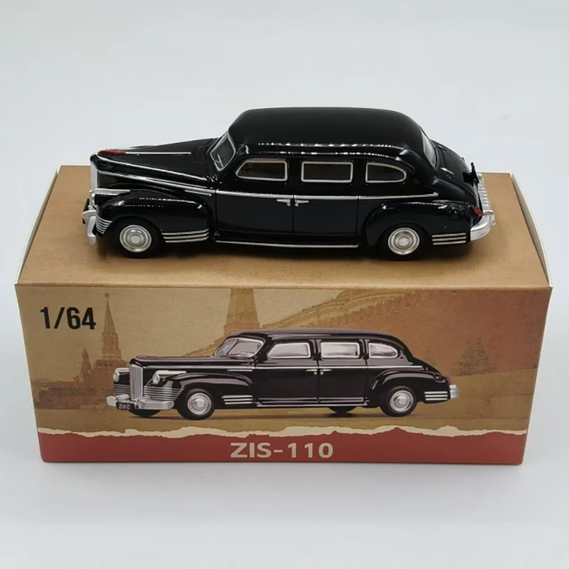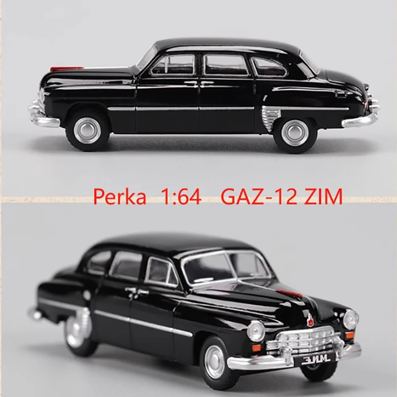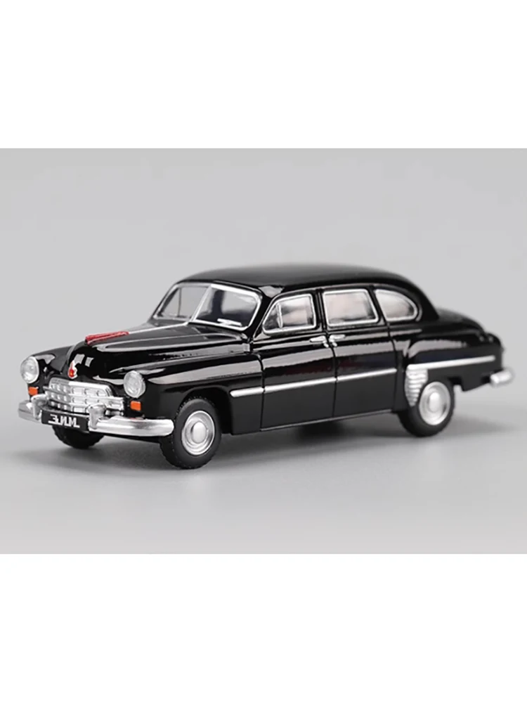 Experience the elegance of the GAZ-12 ZIM diecast model, a meticulously crafted representation of the classic Soviet car. This 1:64 scale model is finished in a sleek black body, adorned with shiny silver chrome accents on the headlights, bumpers, and wheel rims, creating an arresting visual. Its smooth silhouette, featuring a gently curved roofline, evokes nostalgia for vintage automobiles, perfect for collectors and enthusiasts alike. The sturdy metal construction ensures durability while maintaining a lightweight feel, allowing for easy display in any collection. Imagine showcasing this piece of automotive history in your home or office, captivating all who see it.