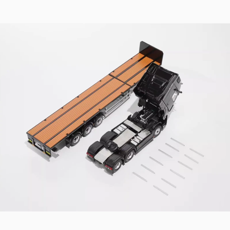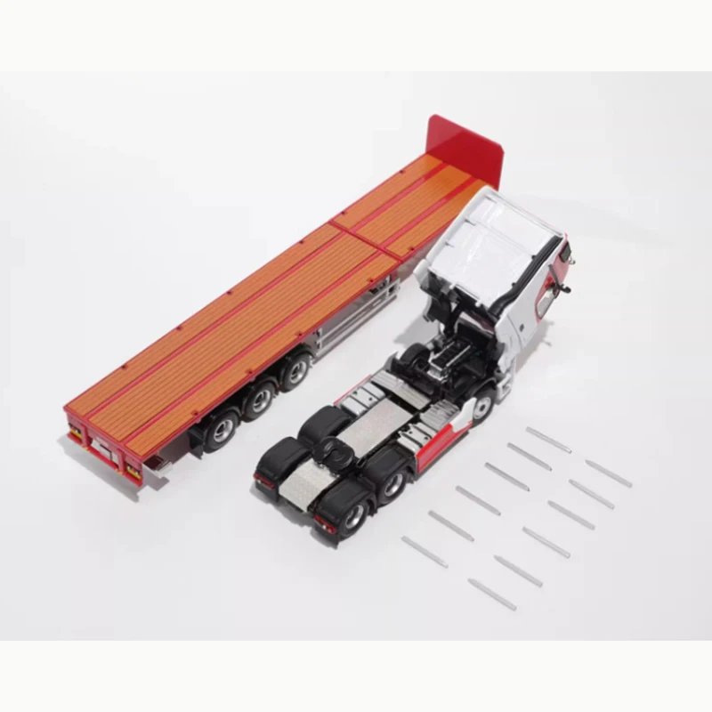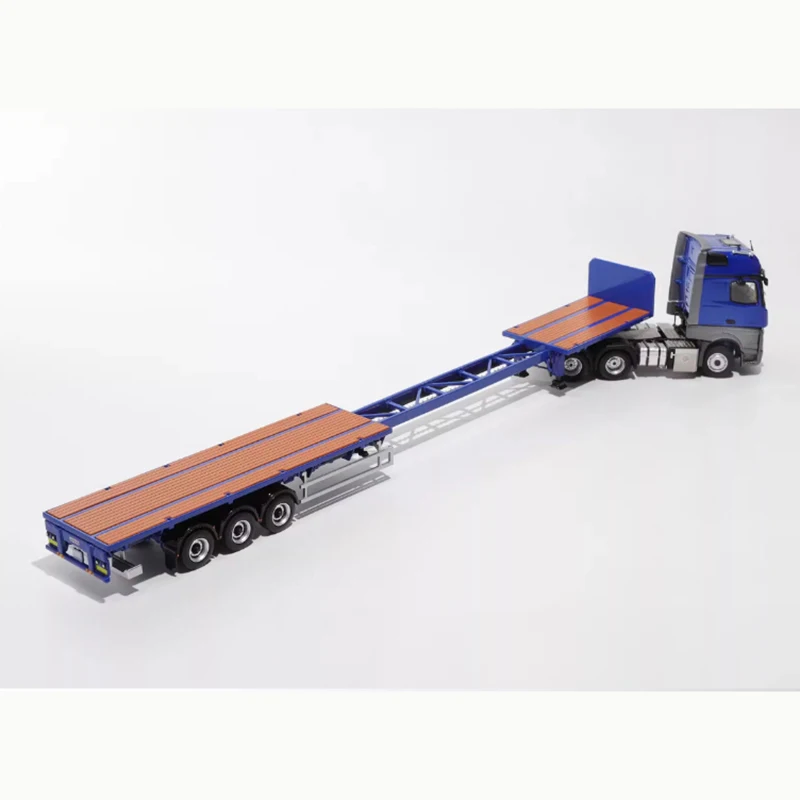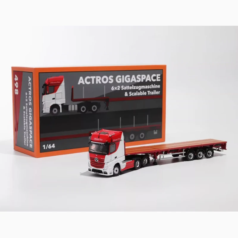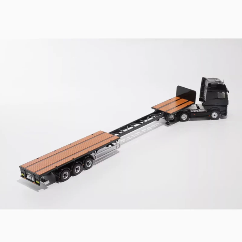 Experience the intricate craftsmanship of the GCD 1/64 Actros 3-axle Tractor with Extendable Trailer. This stunning diecast model showcases a vibrant orange deck with striking red accents on the trailer and a beautifully detailed tractor unit in a classic two-tone scheme of white and red. The Mercedes-Benz logo proudly displayed adds authenticity. Made entirely of durable metal, this model is perfect for collectors who appreciate fine details and aesthetics. Picture this elegant piece gracing your display, capturing the admiration of your guests while you revel in your exquisite taste for unique collectibles. Don't just imagine it; bring this remarkable model into your collection today!
