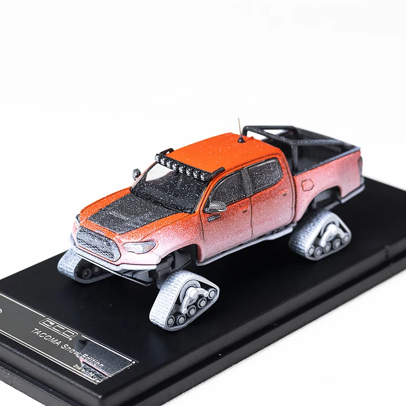 Experience the joy of collecting with this stunning GCD 1:64 Tacoma pickup Snow version Camper vehicle, expertly crafted from durable diecast metal. This beautiful model showcases four unique designs—two vibrant orange variations, a sleek white, and a rugged green camouflage. Each vehicle is detailed with a textured finish that mimics a snowy exterior, perfect for any winter-themed display. From the aggressive front designs and intricate grill details to the snow-treaded wheels, these models are built to captivate both collectors and enthusiasts alike. Immerse yourself in the thrill of having this impressive collection on display, connecting you to the adventurous spirit of the Tacoma.