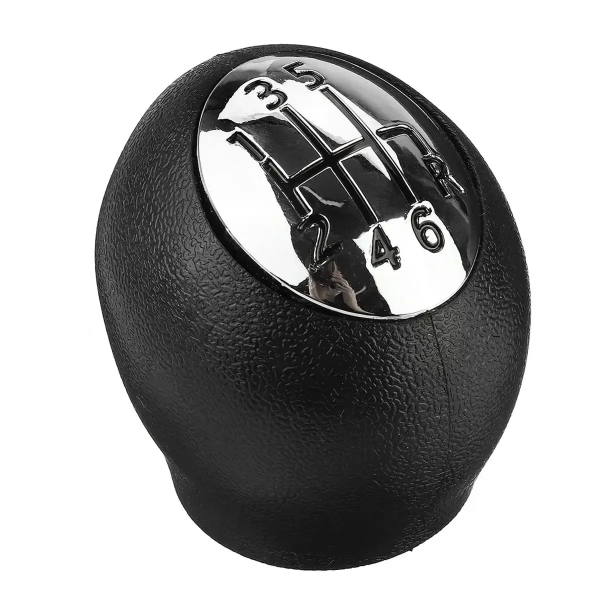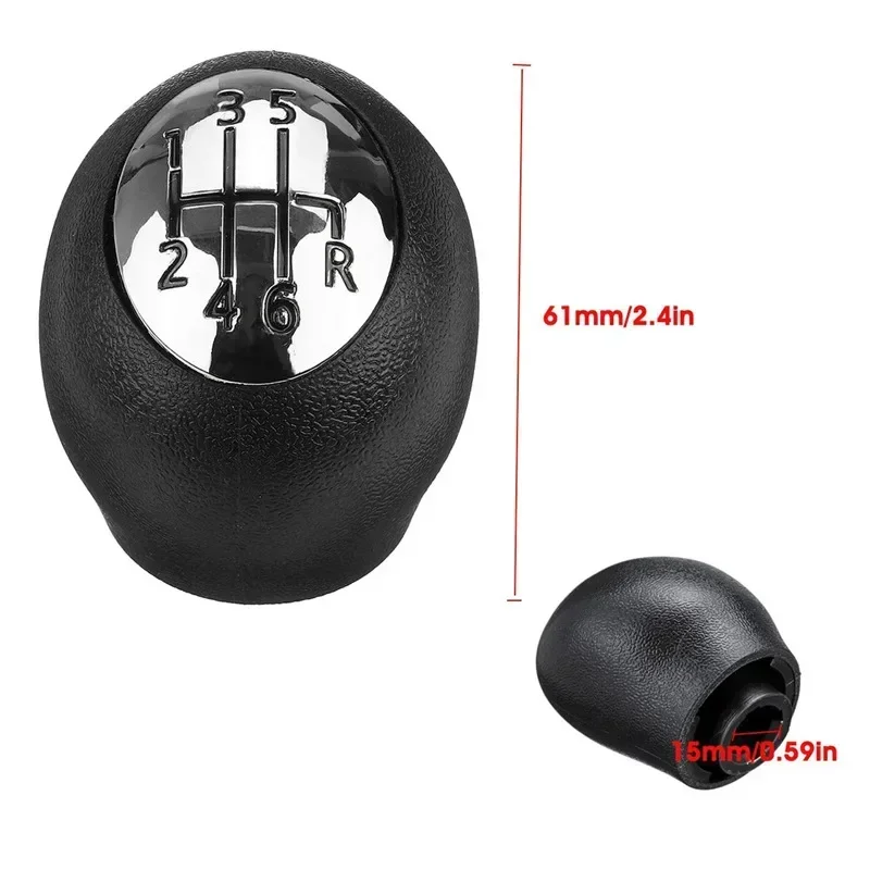 Revitalize your vehicle's interior with this elegant gear shift knob, designed specifically for a range of models including the Renault Megane, Scenic, Laguna, Espace, Master, Trafic, Vauxhall/Opel Movano, Vivaro, and Nissan Interstar. With its smooth, matte black finish and a sleek chrome top displaying an embossed 6-speed gear pattern, this ergonomic knob not only enhances functionality but also complements your vehicle's style. Engineered for easy grip and seamless gear transitions, it stands at 61mm in height and features a hole diameter of 15mm. Crafted from durable PVC and ABS plastic, this knob is built to last while maintaining aesthetic appeal.