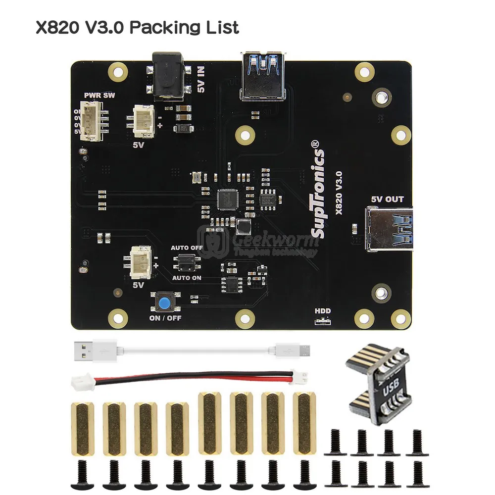 Geekworm X820 V3.0 SATA Storage Expansion Board for Raspberry Pi