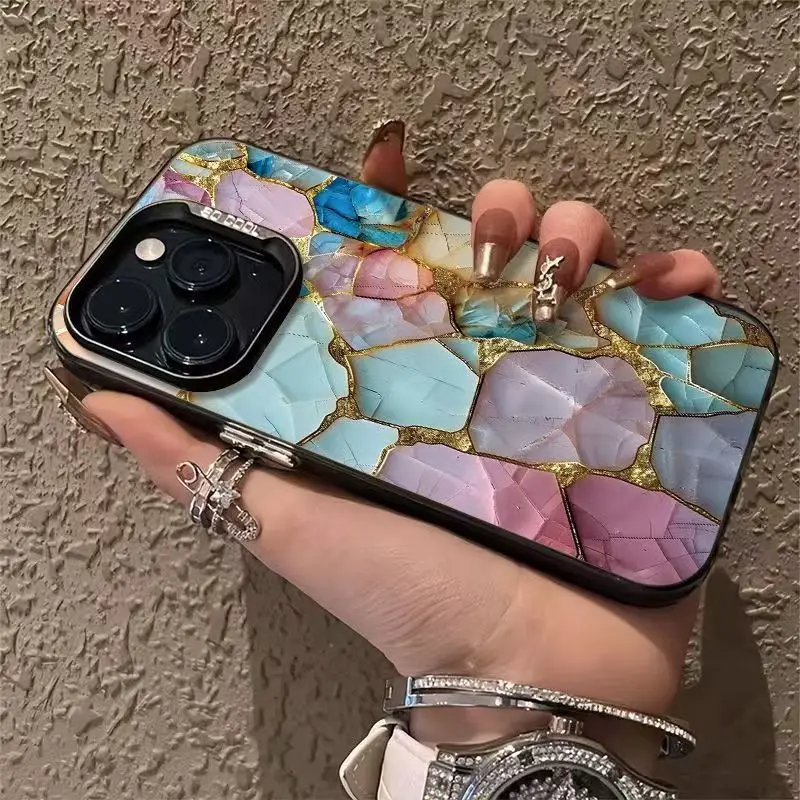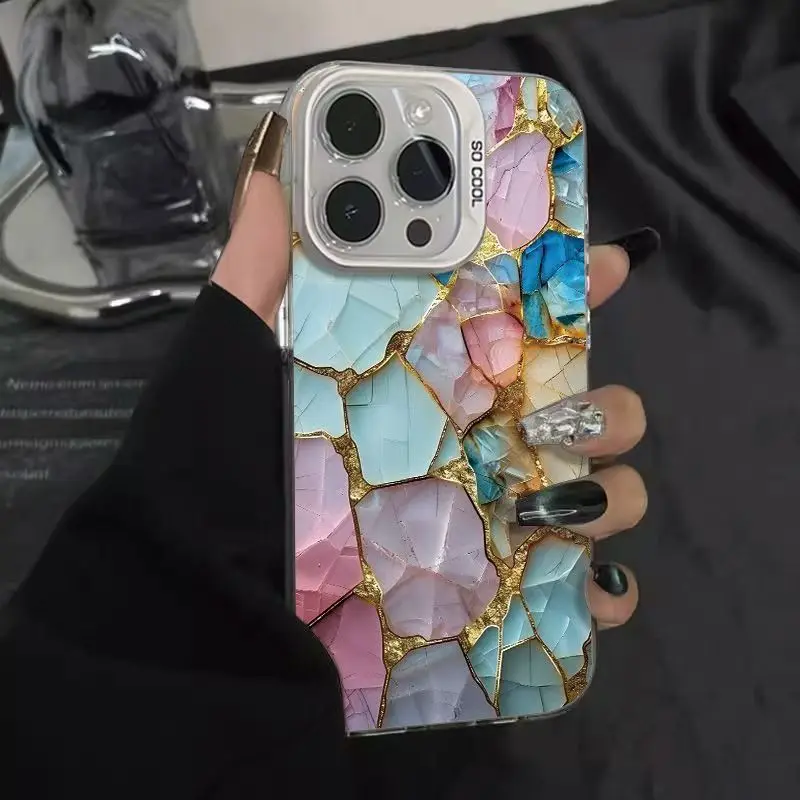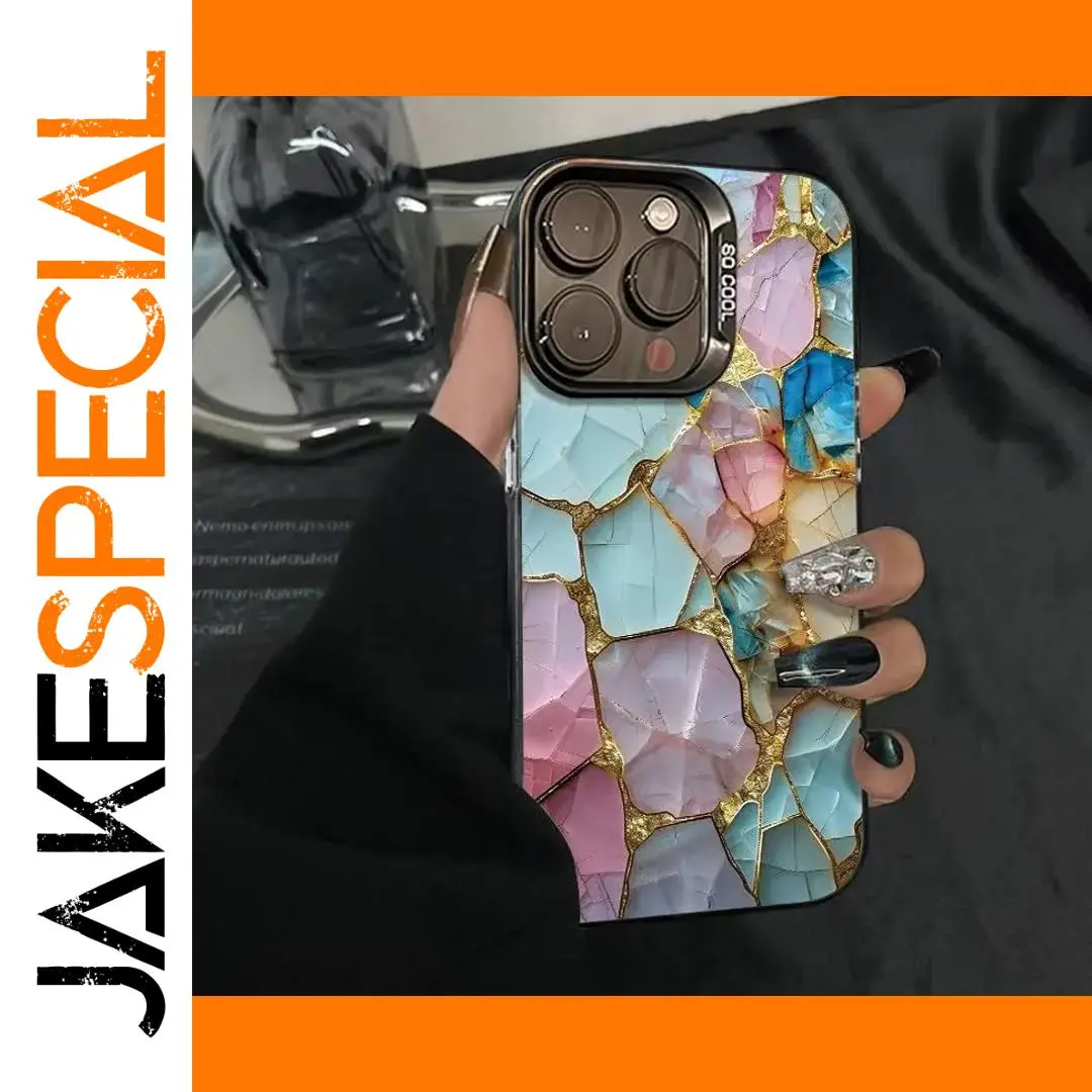 Enhance your device’s style with this stunning gemstone patterned phone case, designed for a range of iPhone models including iPhone 16, 15, 14, 13, 12, 11 series, and more. Crafted with high-quality durable plastic, it offers excellent anti-scratch protection, keeping your phone looking pristine. The glossy finish amplifies the vibrant pastel shades of pink, blue, lavender, and cream-colored mosaic fragments, outlined by fine gold lines that resemble cracked stone surfaces. Its half-wrapped design provides comprehensive back and side coverage while allowing access to all ports, buttons, and the camera. The case beautifully combines elegance with practicality, making it ideal for those who want to express their luxurious taste while safeguarding their device.