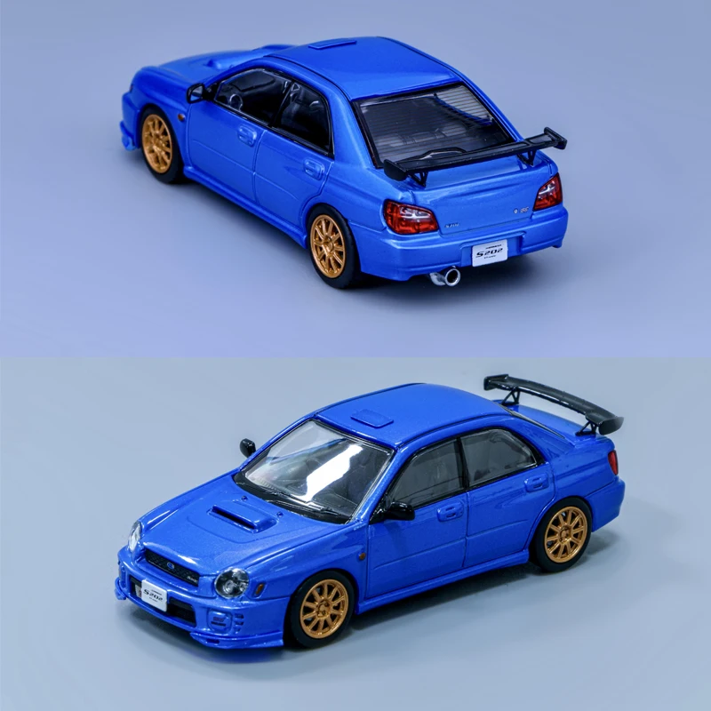 - Finished in a bright metallic blue with glossy paint, complemented by contrasting gold-colored wheels with detailed rim designs for an authentic, sporty aesthetic.