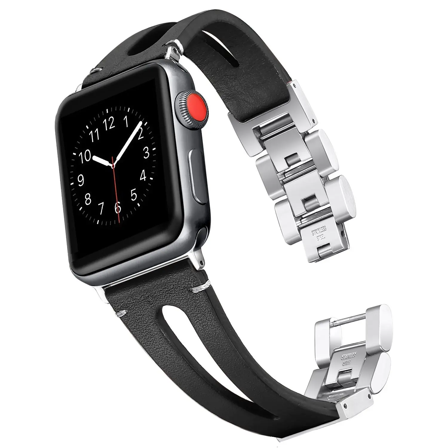 Enhance your Apple Watch with this genuine cowhide leather strap measuring 20cm in length, designed for models ranging from 38mm to 49mm including Series 6, 7, 8, 9, 10, SE, and Ultra. Featuring a stainless steel detachable buckle clasp, this unisex band combines modern elegance with durable craftsmanship. Available in stylish colors—black, brown, red, and white—it offers a perfect balance of fashion and functionality. Its versatile design ensures a comfortable fit for various sizes, seamlessly blending sophisticated leather with sturdy metal for a refined look suited for any occasion.