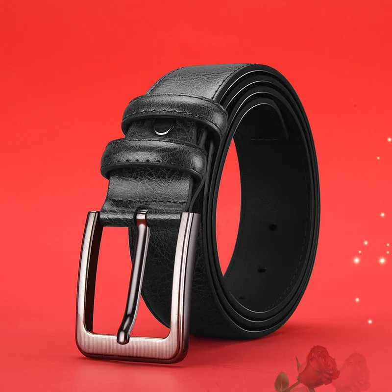 Experience the perfect combination of luxury and practicality with this genuine black leather belt. Crafted from high-quality split leather, it offers exceptional durability and a refined appearance suitable for both everyday wear and special occasions. The smooth, glossy finish with subtle textured details adds an elegant touch, while the clean, finished edges showcase impeccable craftsmanship. Its versatile design makes it an ideal accessory for professional settings or casual outings. The sturdy alloy needle buckle with a polished silver finish enhances the overall sophisticated look, providing a secure and comfortable fit. Whether you're dressing up a suit or adding a refined touch to casual attire, this belt will complement your style effortlessly. Feel confident and stylish every day with this timeless accessory.