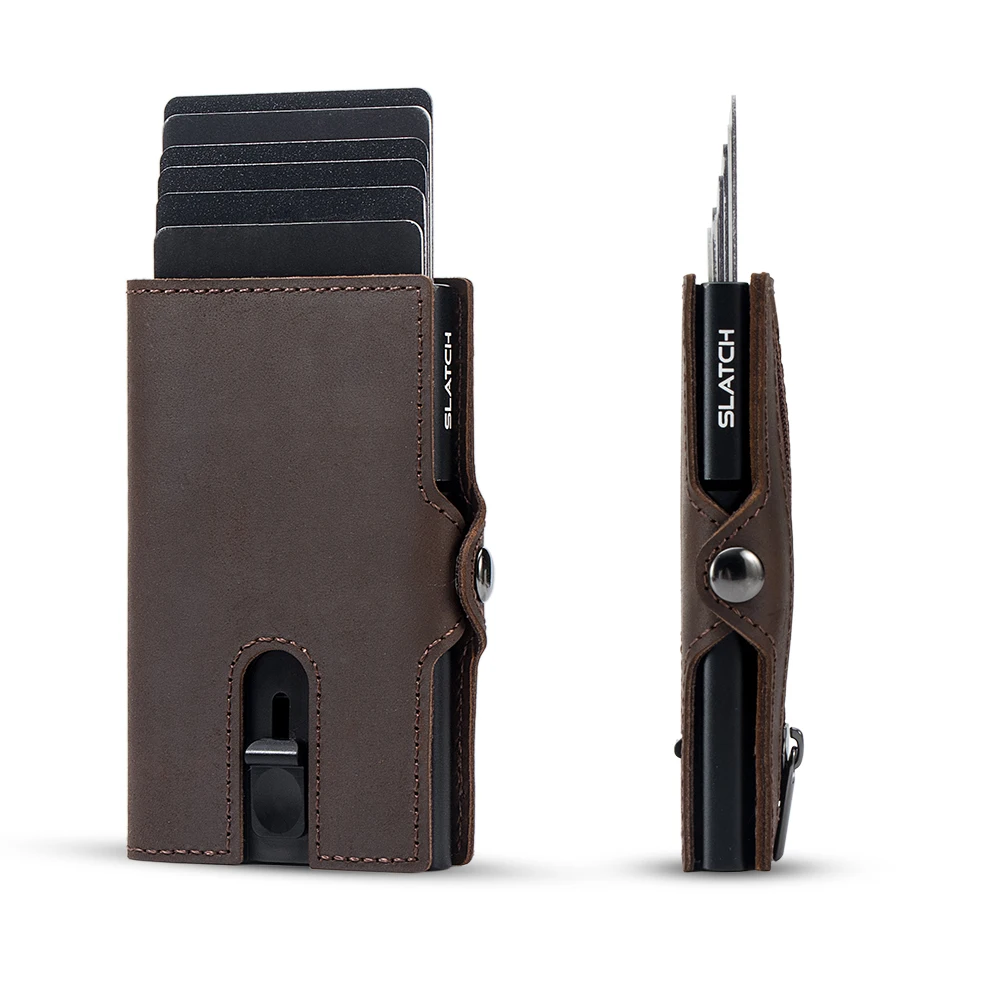 Elevate your style with this exquisite men’s wallet crafted from 100% genuine cow leather. Designed for convenience, it features a pop-up card holder that securely accommodates 6-7 cards, ensuring easy access when you need it. The wallet includes a spacious compartment for coins and cash, all while maintaining a sleek profile. Its RFID blocking technology offers added security against digital theft. With a fashionable design and a robust aluminum alloy framework, this minimalist wallet is not only practical but also a statement piece. Experience the blend of elegance and functionality as you make this wallet an essential part of your daily routine.