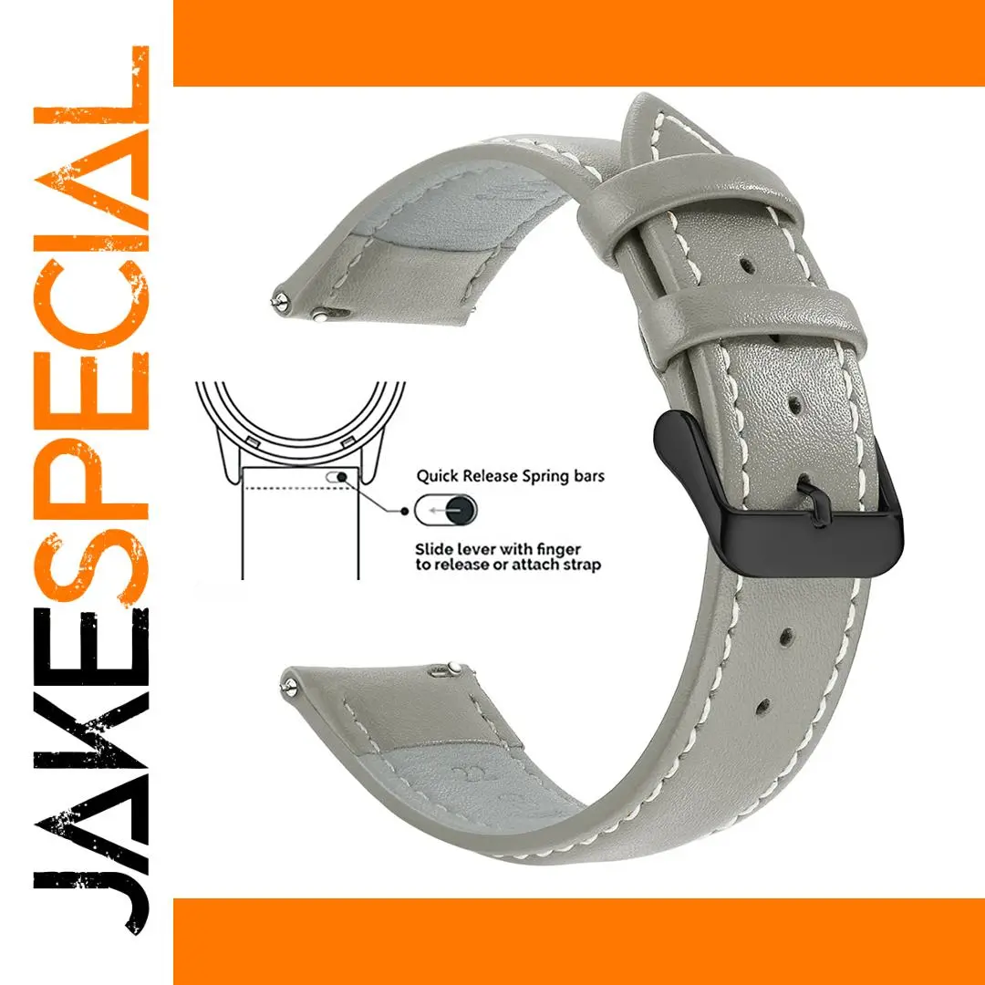 Elevate your timepiece with this Top Grain Genuine Leather Watch Band, available in sizes 18mm, 20mm, and 22mm, measuring 20cm in length. Crafted from high-quality cow leather, the band features a smooth, light gray finish and a durable stainless steel clasp that adds a modern touch. Enjoy the convenience of the quick release spring bar function for effortless installation, ensuring a comfortable fit. This versatile band is compatible with a wide range of watch models, including the Samsung Galaxy Watch, Garmin, and Huawei, making it a stylish choice for both smart and traditional watches.