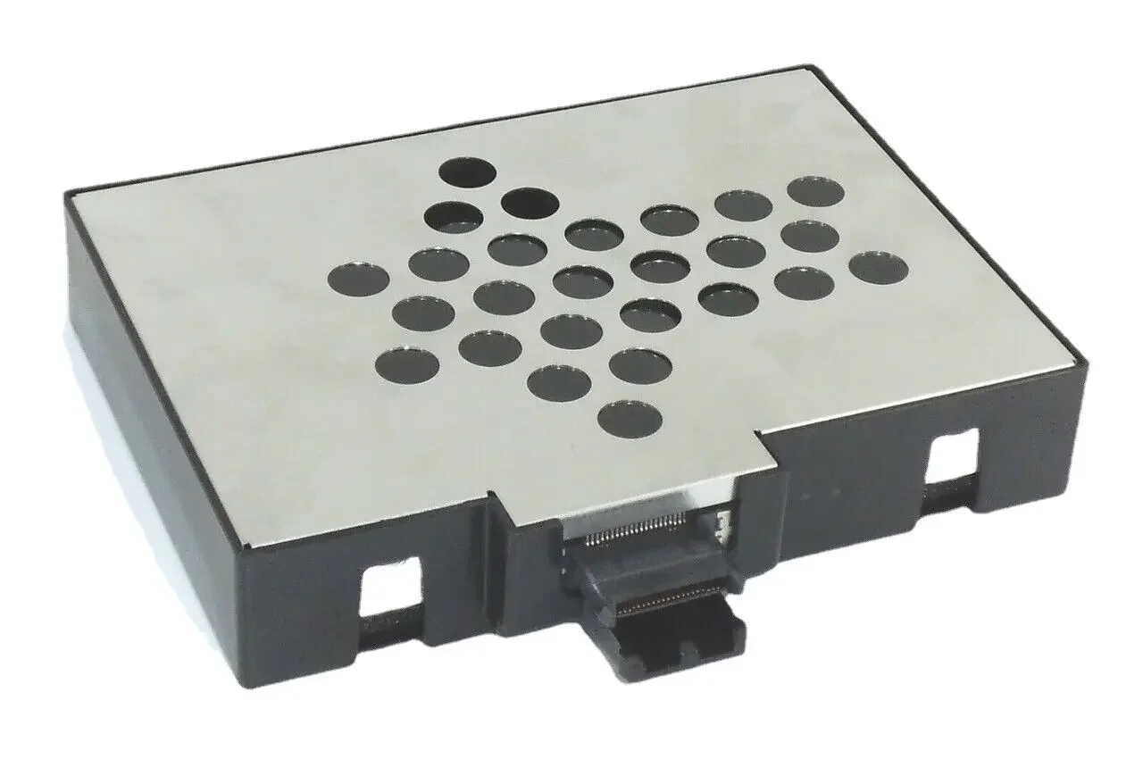 Enhance your Panasonic rugged tablet with this set of 2 genuine CF-D1 hard drive caddies, compatible with MK1, MK2, and MK3 models. Each caddy features a durable black plastic base and a polished silver metal top with a grid of circular vent holes for optimal heat dissipation. Equipped with a SATA 3.0 interface, connector, and heater, these used but thoroughly tested caddies are in excellent condition, ensuring reliable performance. Designed for rugged tablet applications, they provide a practical and sturdy solution for expanding or replacing your tablet’s storage. Upgrade your device with these high-quality, original Panasonic caddies tailored for durability and efficiency.