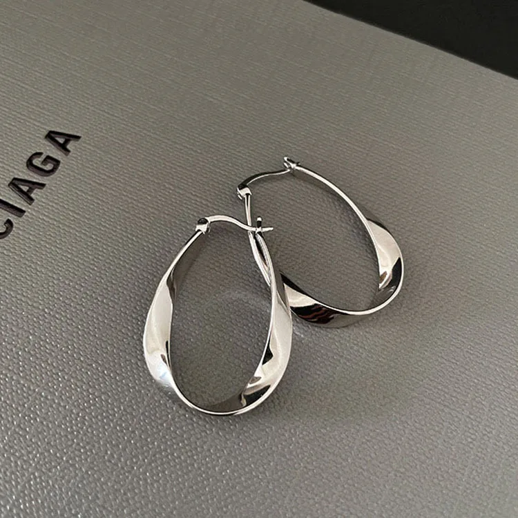 - Made from durable zinc alloy, these earrings measure 72mm long and 45mm wide, designed with a unique twisted Möbius strip shape for a striking look.