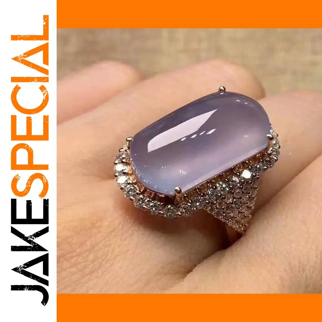 - The central gemstone, in soft lavender or light gray, is semi-translucent and framed by a detailed border of small cubic zirconia crystals, adding sparkle and luxury to its appearance.