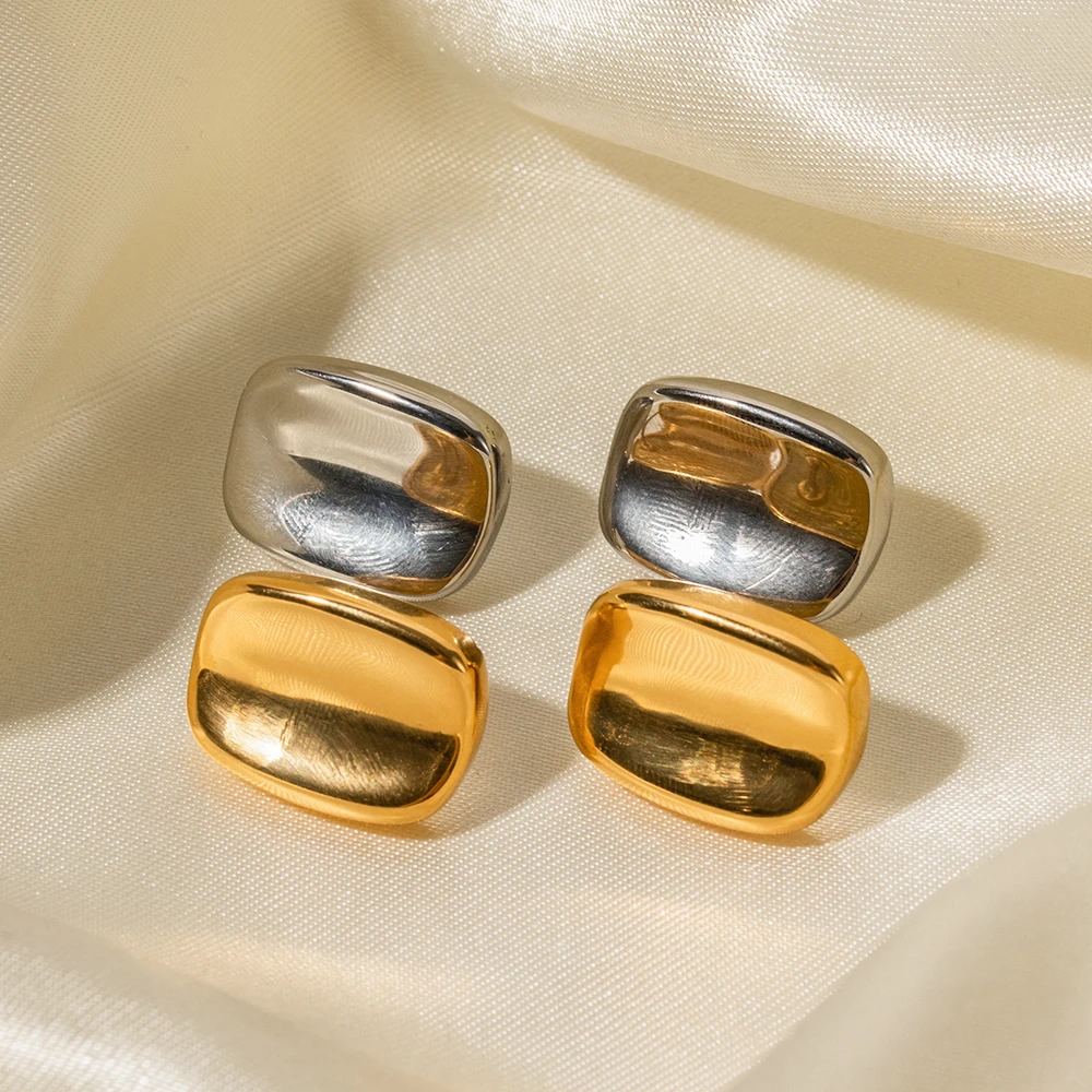 Elevate your everyday look with these modern geometric earrings. Crafted from high-quality stainless steel, they offer lasting durability and a sleek, polished finish. Designed in a soft, rounded rectangular shape, these earrings reflect light beautifully, adding a touch of sophistication to any outfit. Available in two eye-catching finishes—radiant gold or reflective silver—they promise versatility for both casual and formal occasions. The minimalist design emphasizes clean lines and smooth curves, making them an effortless accessory that enhances your style. Easily worn and securely fitted with push-back stud closures, these earrings provide comfort without sacrificing elegance. Will seamlessly complement your wardrobe, boosting your confidence and refined taste. Experience the blend of durability and style today.