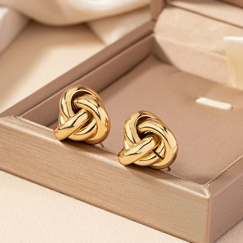 - This women's stud earring showcases a geometric twisted wire design available in gold and silver colors, perfect for contemporary fashion enthusiasts seeking stylish daily accessories.