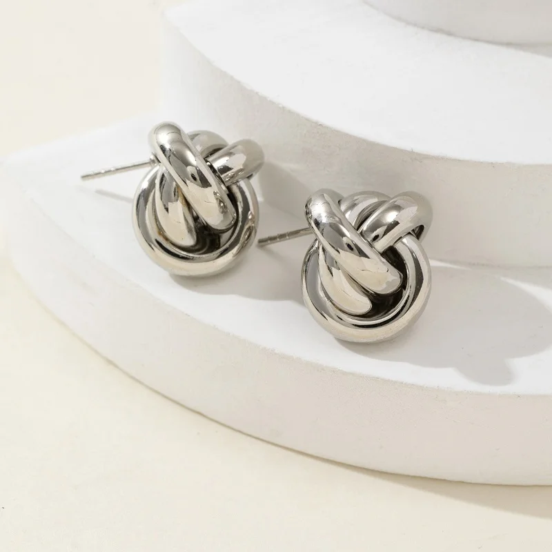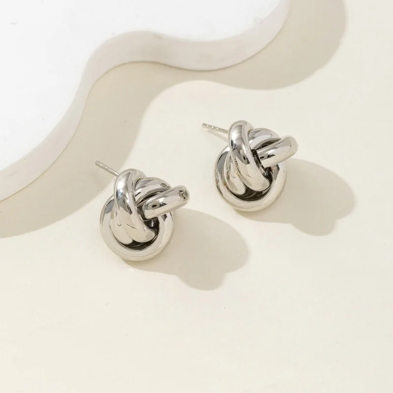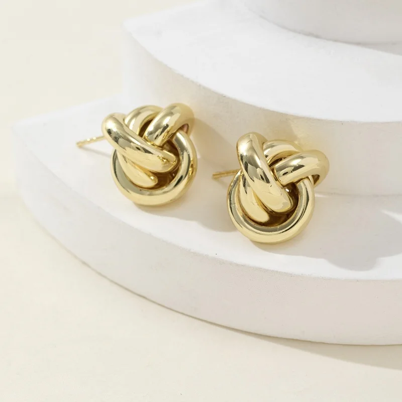 Discover the perfect accessory to elevate your everyday look with this trendy and minimalist geometric earring stud. Crafted from durable iron alloy, it features a bold twisted wire design in both warm gold-tone and sleek silver-tone finishes. The intricate knot-like shape creates a 3D circular silhouette that is compact yet eye-catching. Its polished surface reflects light beautifully, adding a touch of elegance to any outfit. Whether you are heading to work or enjoying a casual outing, this modern jewelry piece complements various styles effortlessly. Designed for daily wear, this earring offers both fashion and comfort with a secure push-back fastening. Make a statement while maintaining a simple, refined aesthetic with this versatile accessory.