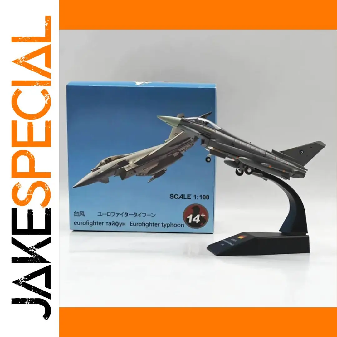 Step into the world of aviation with this stunning 1:100 scale German Air Force EF2000 Typhoon fighter jet model. Crafted from high-quality alloy, it captures the sleek, aerodynamic silhouette of the modern fighter jet with precision. The model measures approximately 15 cm in length and 11 cm in width, making it an ideal display piece for collectors and enthusiasts. Its design showcases sharp angular features, realistic cockpit canopy, air intakes, and detailed landing gear. Subtle tonal variations in shades of gray highlight the angular paneling and contours, while small accents in orange and black add contrast and visual interest. The sturdy black display stand elevates the model for a striking visual presentation, perfect for decorating your space or as a thoughtful gift.