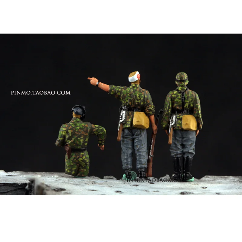 Step into the heart of a historical battlefield with this detailed 1:72 scale resin model set. Designed for adult collectors, it features intricately crafted German soldiers engaged in a tactical moment, complete with wounded personnel and a three-man support team. The figures are painted in realistic camouflage patterns, with textures highlighting facial expressions, gear, and battlefield accessories. The terrain mimics natural terrain with rocks and grass, creating a vivid and immersive diorama. The meticulously engineered details bring the scene to life, making it perfect for display or as part of a collection. Add a touch of historical authenticity to your display with this handcrafted model, designed to captivate and impress.