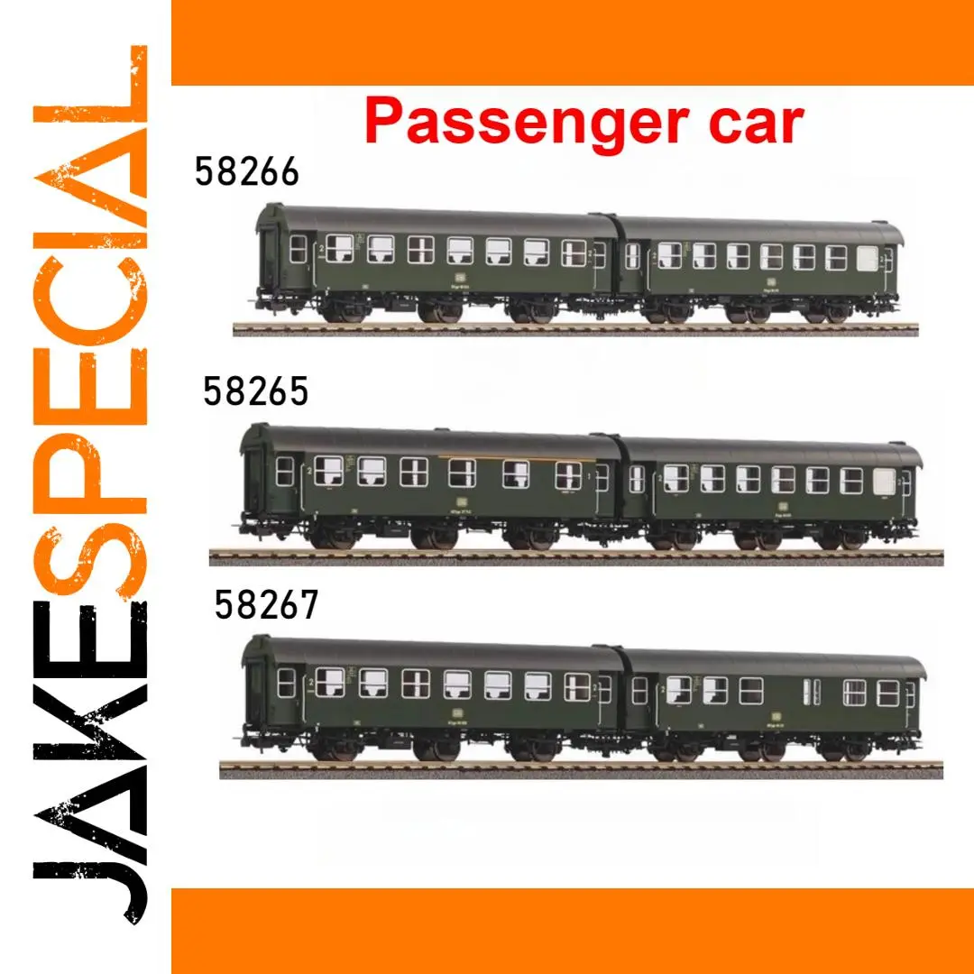 - These HO scale models are produced at 1:87 scale, with three variants (58265, 58266, 58267) representing two-section passenger cars, each with distinct window layout and detailing.