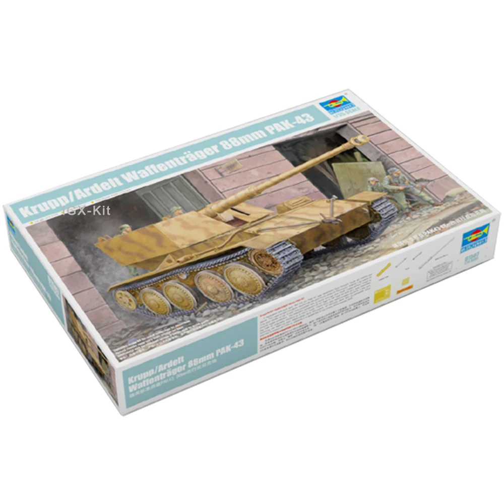 Immersemble this high-quality model kit to experience the intricate design of a German Krupp Ardelt 88mm Pak 43 vehicle. With over 1,010 precise plastic parts, including a detailed metal barrel and two etched components, this kit is perfect for hobbyists who enjoy building authentic military replicas. Its refined detailing features over 230 individual track links, illustrating a realistic and complex vehicle. Measuring 213.7mm long and 89.5mm wide, the model embodies authentic proportions and craftsmanship. Scaled at 1:35, it captures the commanding presence of this historic vehicle. Assembling this model offers a rewarding hands-on experience, allowing you to create a stunning display piece that highlights military engineering excellence.