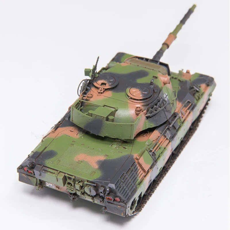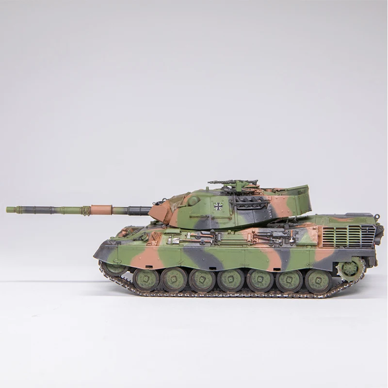 Immerse yourself in military history with this highly detailed 1/72 scale German Leopard 1 A1A1 main battle tank model. Crafted from durable resin, this static display piece captures the essence of the original vehicle’s rugged design and intricate details, including camouflage patterns in shades of green, tan, and black. Its surface features finely molded textures such as panel lines, rivets, and structural elements, delivering an authentic look. The turret’s rounded, angular shape, long gun barrel with weathering effects, and additional details like hatches and periscopes make this model a true collector's item. Perfect for display, it brings military history vividly to life and enhances any collection or décor setup.