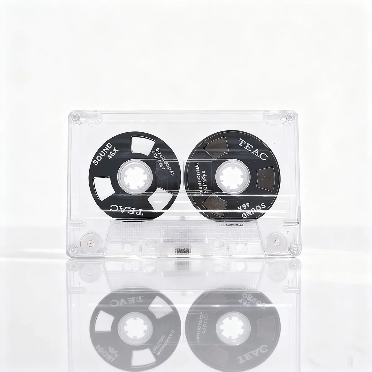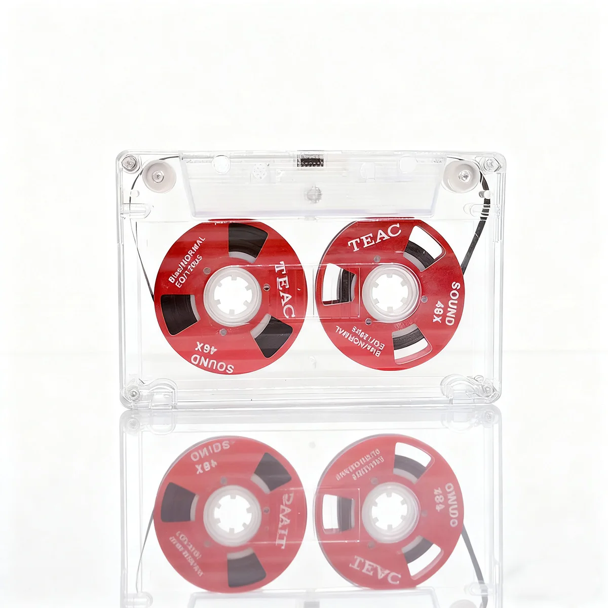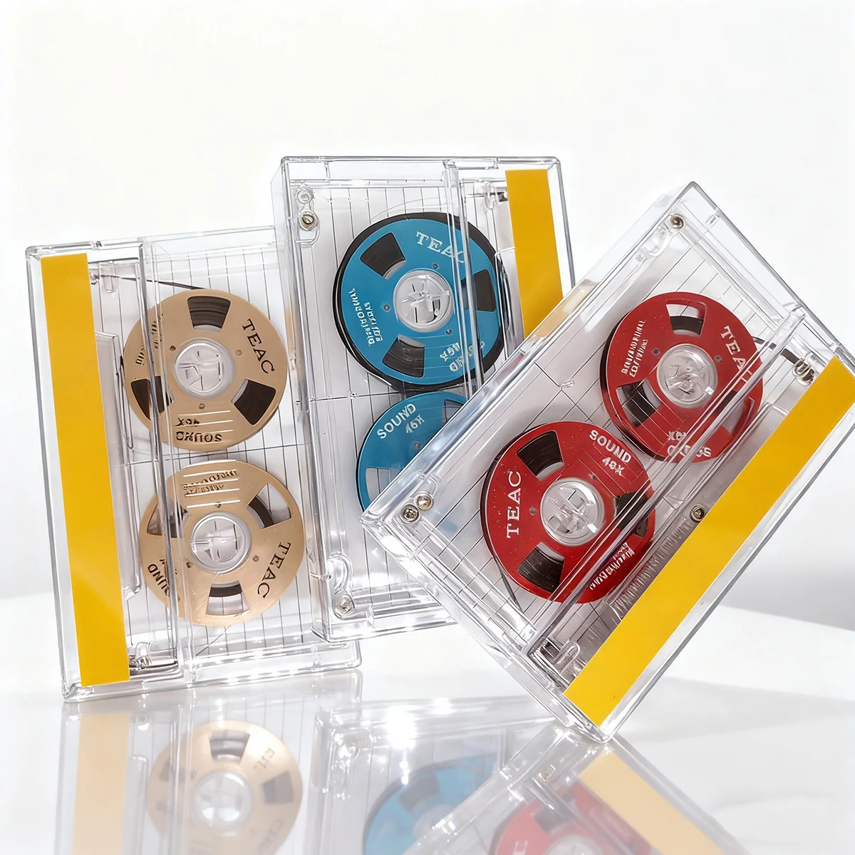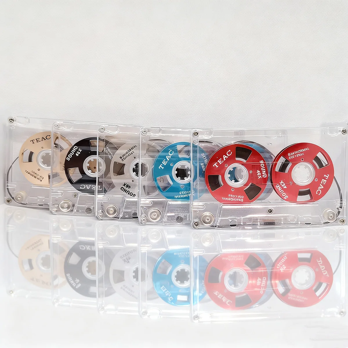 Experience high-quality audio recording with this blank cassette tape, featuring a transparent plastic shell and sleek metal reels available in various colors. With a total recording time of 50 minutes (25 minutes per side), it is compatible with professional audio equipment and players, ensuring optimal sound reproduction. German-made magnetic tape guarantees enhanced audio clarity and fidelity. The elegantly designed transparent case showcases the shiny reels that rotate during playback, combining functionality with a modern aesthetic. Perfect for capturing your favorite songs or phrases, this durable, high-performance cassette offers reliable performance for audio enthusiasts and professionals alike.