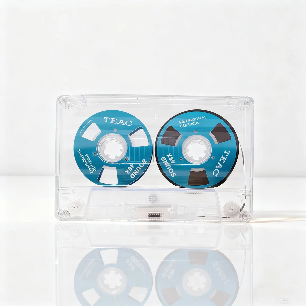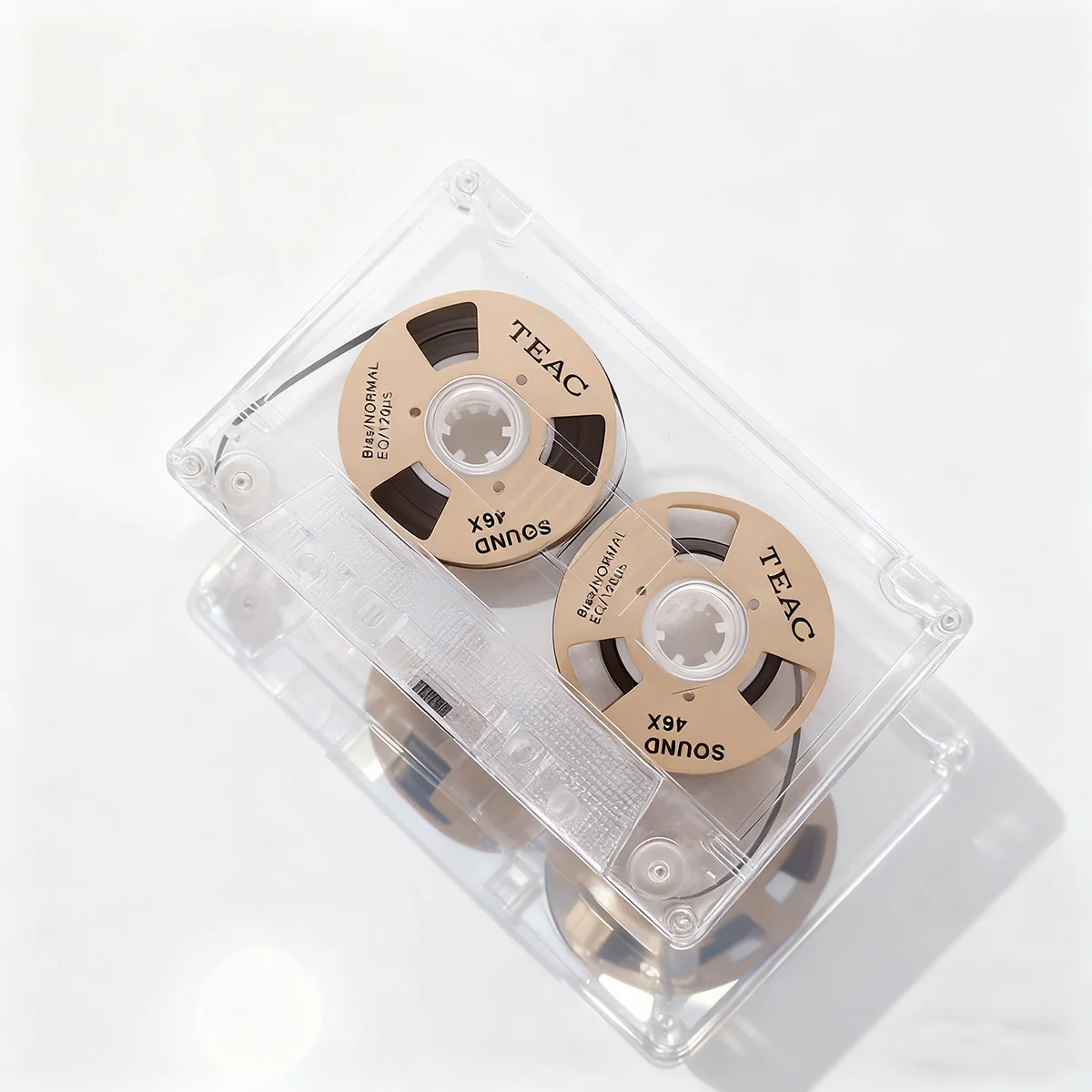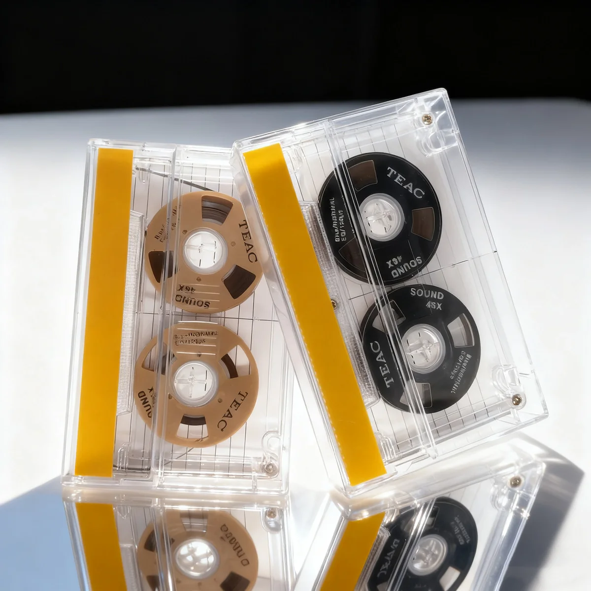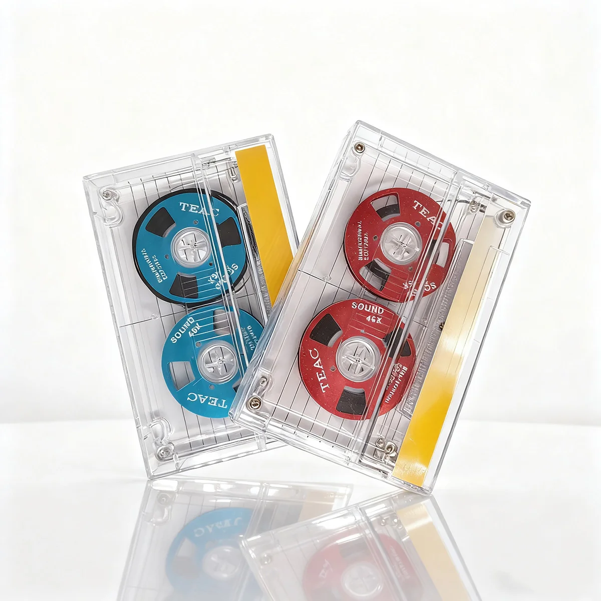 Experience high-quality audio recording with this blank cassette tape, featuring a transparent plastic shell and sleek metal reels available in various colors. With a total recording time of 50 minutes (25 minutes per side), it is compatible with professional audio equipment and players, ensuring optimal sound reproduction. German-made magnetic tape guarantees enhanced audio clarity and fidelity. The elegantly designed transparent case showcases the shiny reels that rotate during playback, combining functionality with a modern aesthetic. Perfect for capturing your favorite songs or phrases, this durable, high-performance cassette offers reliable performance for audio enthusiasts and professionals alike.