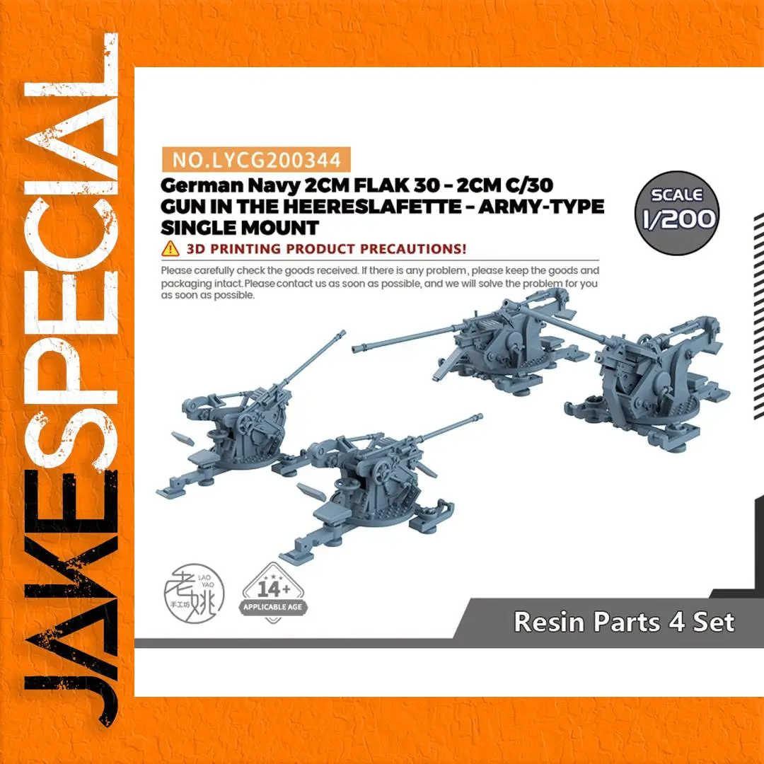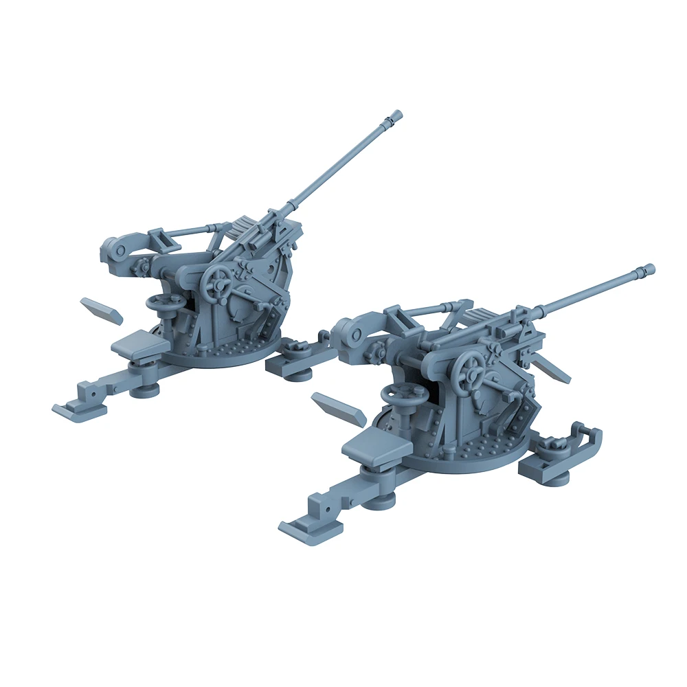 The LYCG344 Model Upgrade Parts for the German Navy 2CM FLAK 30 are meticulously crafted resin components designed for scale models at 1/200, 1/350, and 1/700 scales. These parts are presented in a muted gray color, showcasing intricate detailing of the gun’s barrel, mounting plates, and structural elements, including wheels and levers. The broad and stable bases ensure essential support, while the barrels are positioned at varying angles to suggest functionality. Enhance your military naval equipment collection with these finely detailed model upgrade parts that emphasize accuracy and craftsmanship.