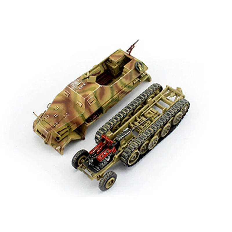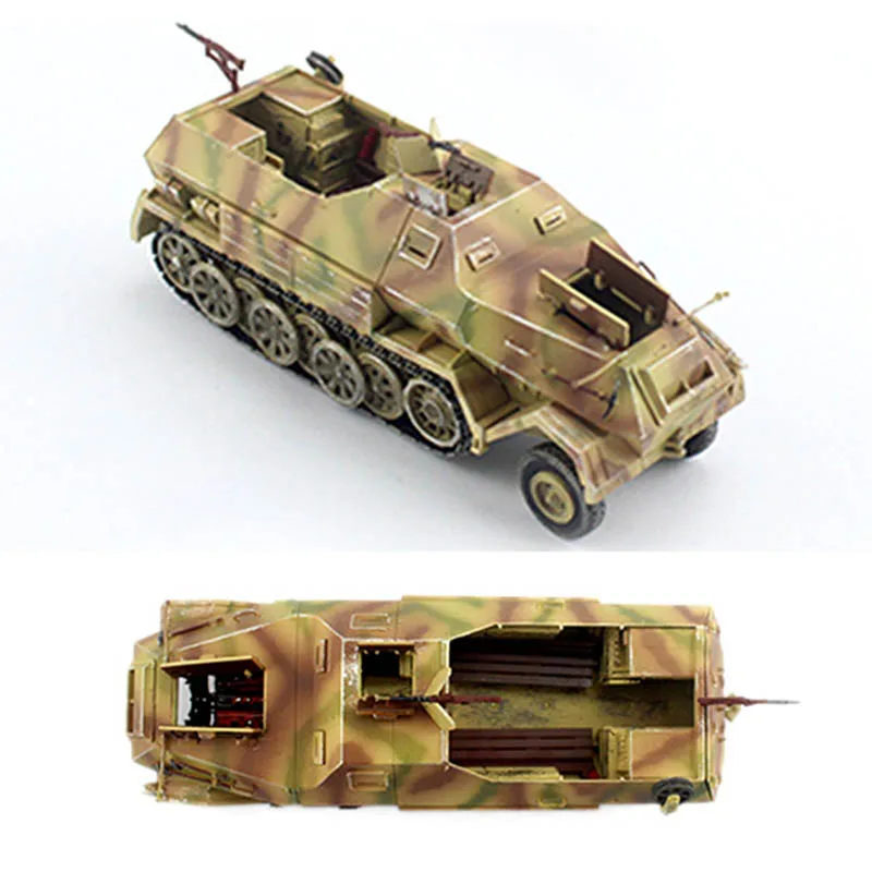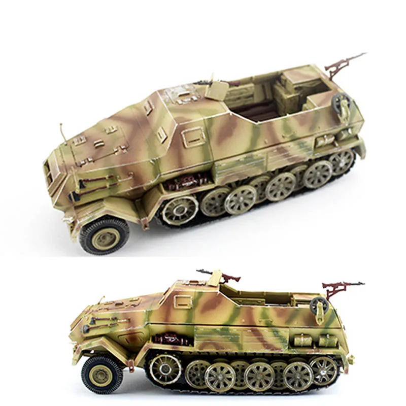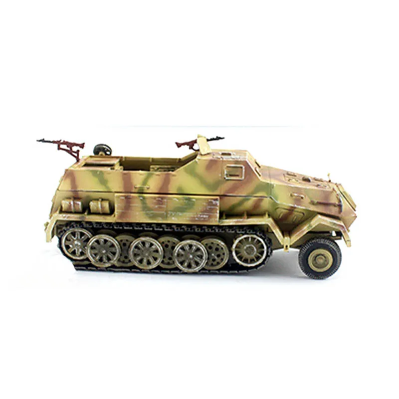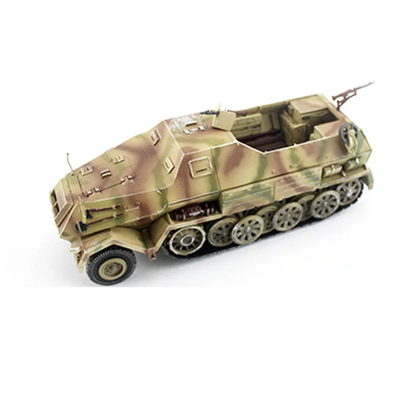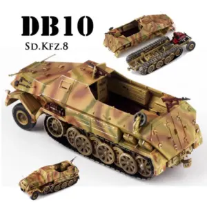 Experience the craftsmanship and realism of this beautifully detailed 1/72 scale model of the German Sd.Kfz.8 DB10 12-ton half-track and its matching 88-towed trailer. Crafted from high-quality plastic (ABS), this miniature captures the rugged, military-inspired aesthetic with exceptional precision. The vehicle is painted with a camouflage pattern blending earthy browns, tans, and greens, giving it a natural woodland appearance perfect for display. Its textured surface features tiny hinges, rivets, and handles, enhancing its authentic, weathered look. The model exudes vintage military charm and offers a true-to-life visual experience, making it an excellent addition for collectors and enthusiasts seeking a realistic miniature representation of this historic vehicle.
