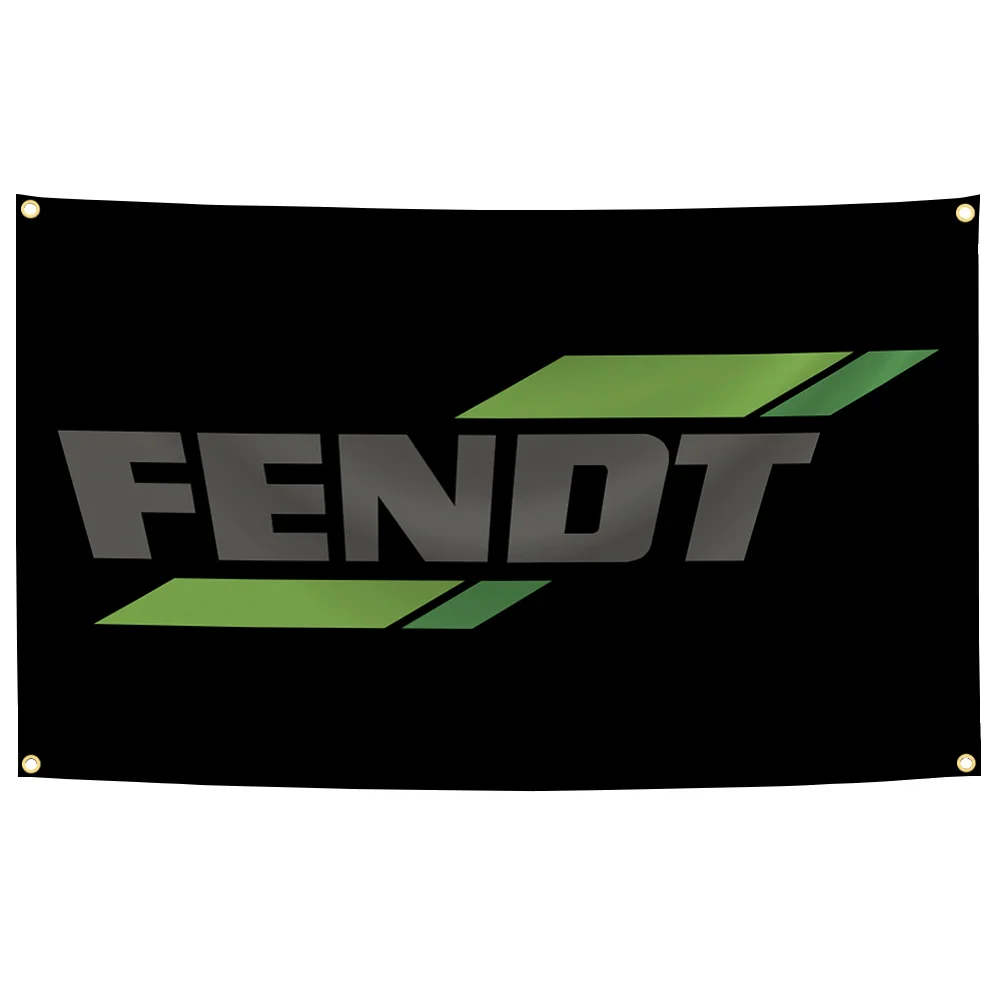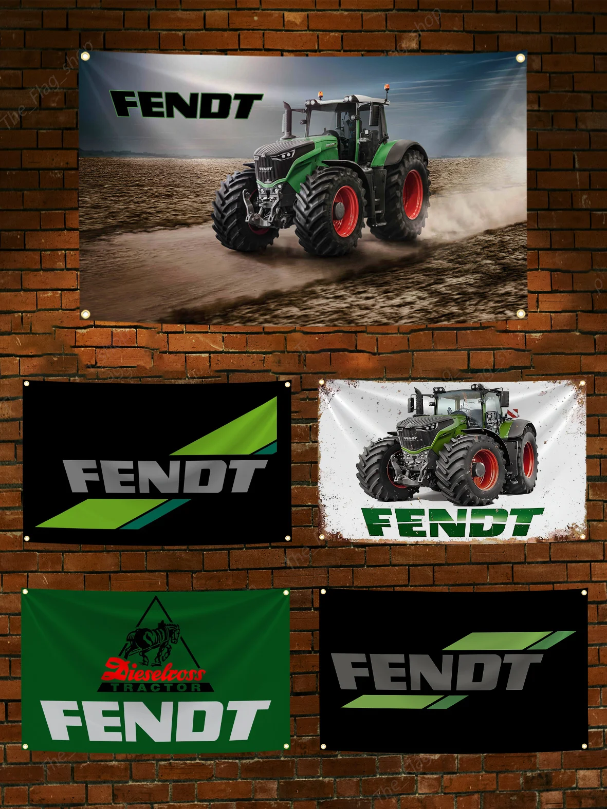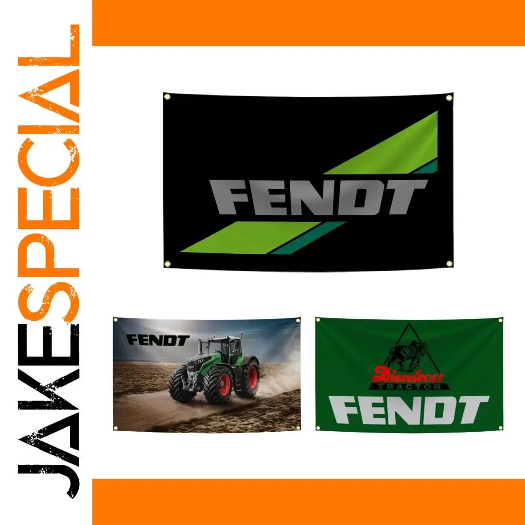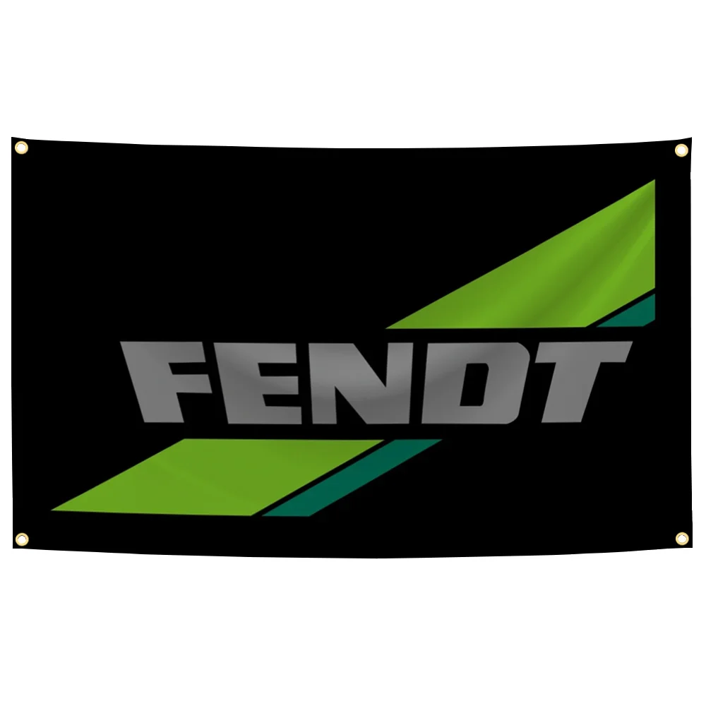 - The design features a sleek black background with a stylized green geometric “FENDT” logo at the top, offering a contemporary, energetic aesthetic aimed at tractor and farming enthusiasts.