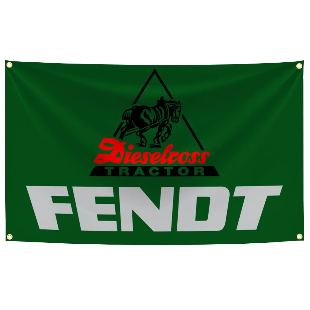 Experience the bold and vibrant aesthetic of this this Germany Agriculture Tractor FENDT banner, perfect for outdoor decorating enthusiasts. Crafted from durable polyester fabric with a super-TEX finish, it measures 90×150 cm and weighs just 80 grams, making it easy to hang and weather-resistant. The design captures a modern, energetic style featuring a sleek black background with the prominent “FENDT” logo atop a geometric green pattern. The middle section displays a realistic green tractor set against a farm scene, while the lower banner showcases a dark green background with a stylized silhouette of agricultural machinery highlighted in red and black, complemented by bold lettering. Bring this striking decoration to your garage, garden, or outdoor space and enjoy a touch of industrial charm and agricultural pride.